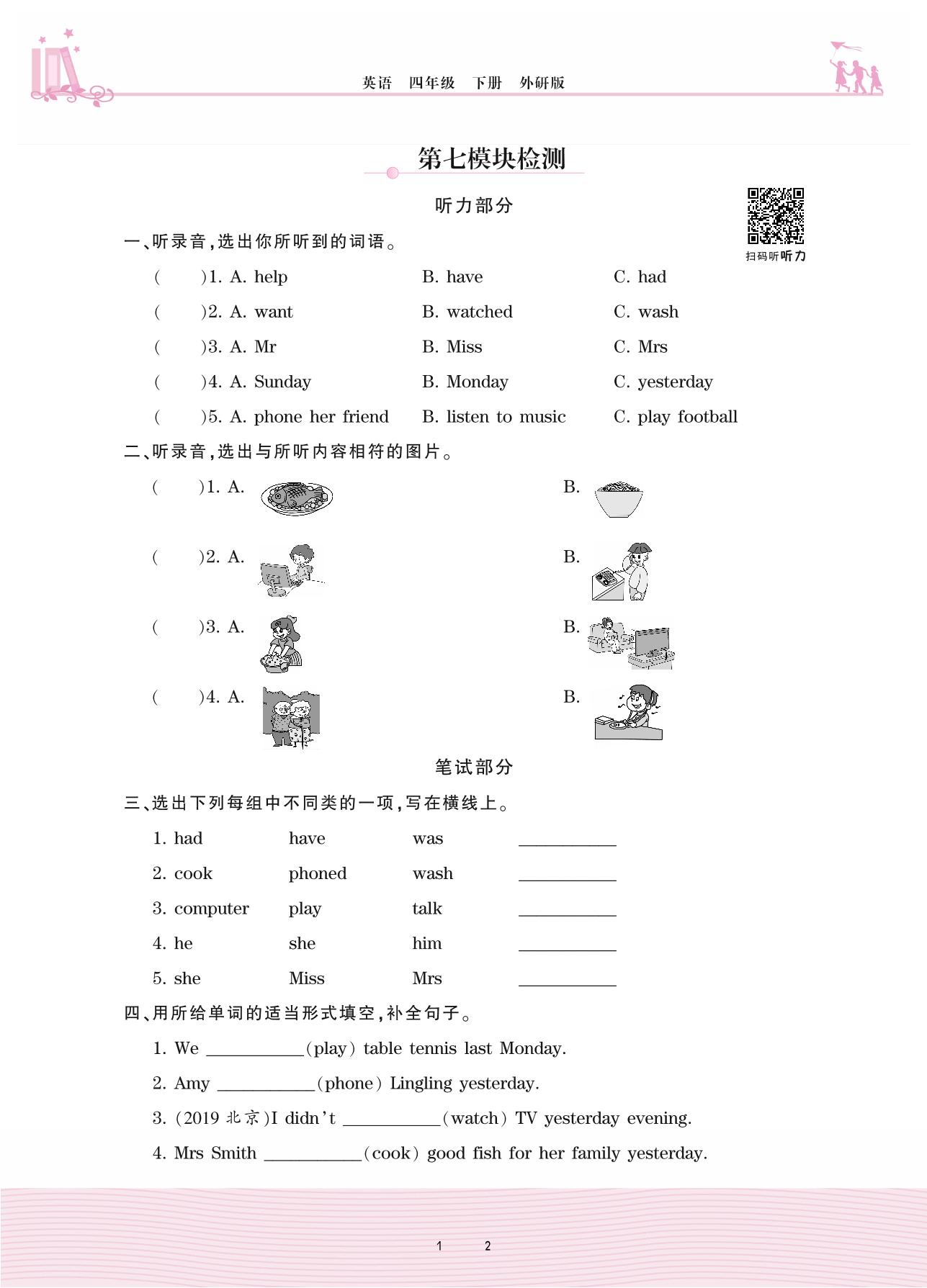 2021下册四年级英语外研版 Module 7—第七模块检测
