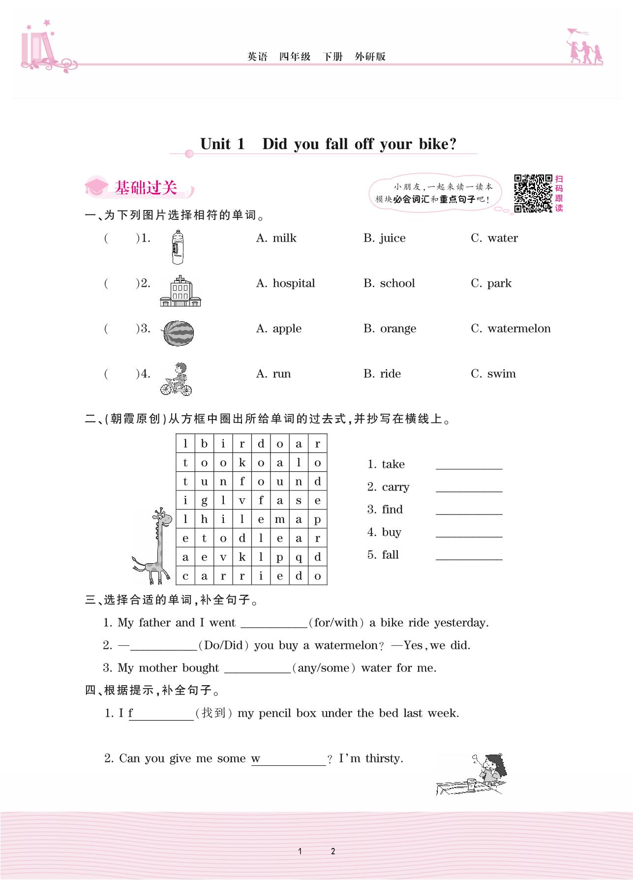 2021下册四年级英语外研版 Module 10—Unit 1 Did you fall off your bike?