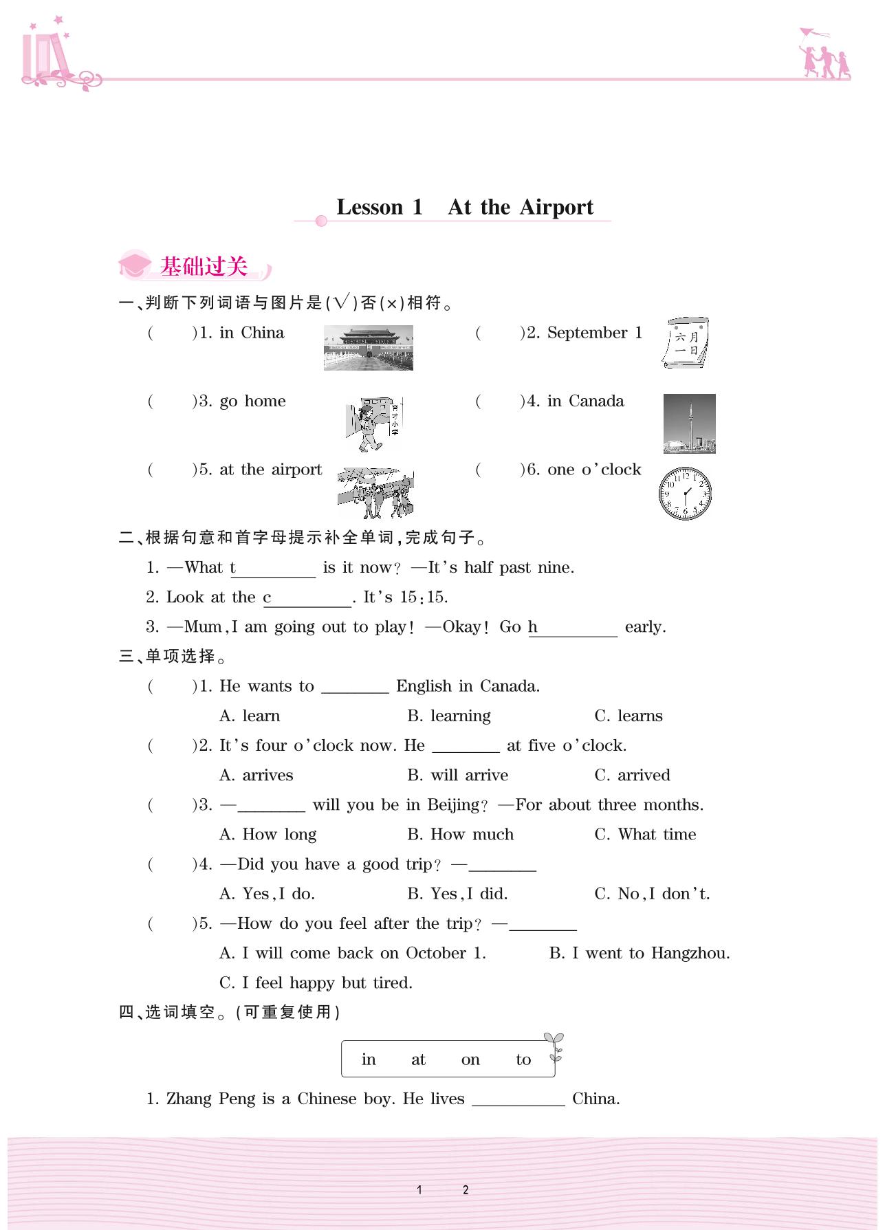 2020上册六年级英语冀教版 Unit 1 Li Ming Goes to Canada—Lesson 1 At the Airport