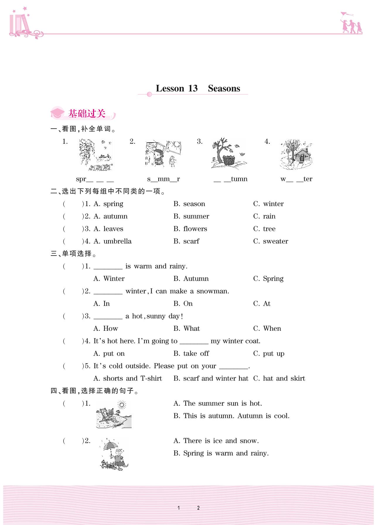 2020上册六年级英语冀教版 Unit 3 Winter in Canada—Lesson 13 Seasons