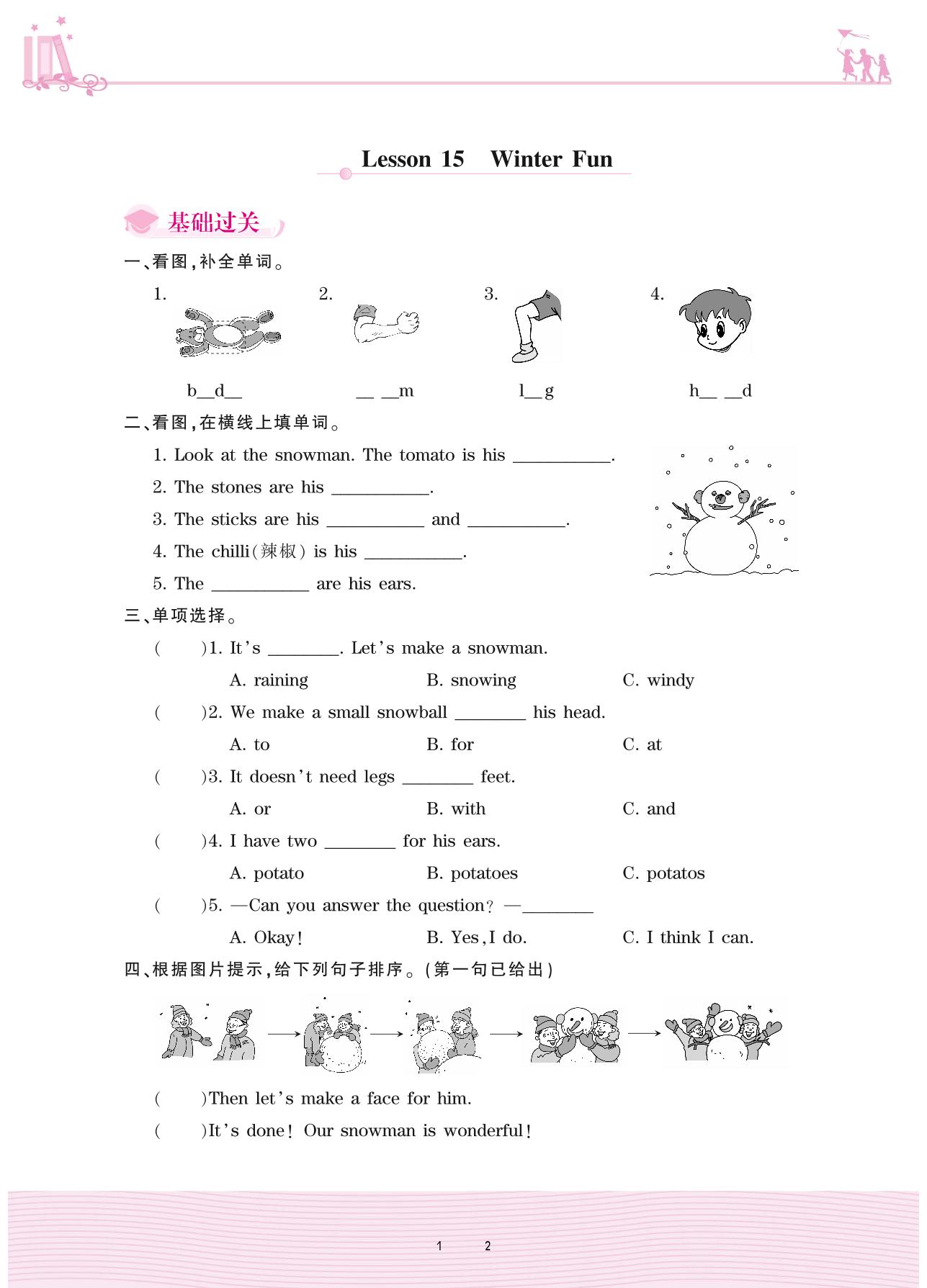 2020上册六年级英语冀教版 Unit 3 Winter in Canada—Lesson 15 Winter Fun