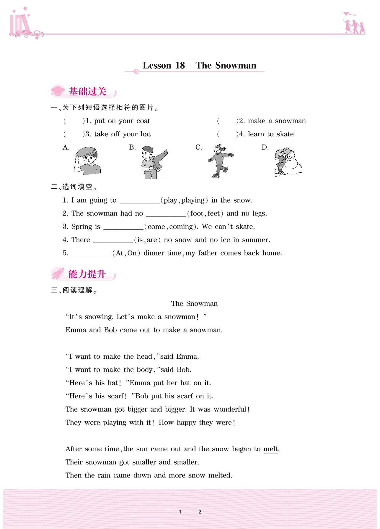 2020上册六年级英语冀教版 Unit 3 Winter in Canada—Lesson 18 The Snowman