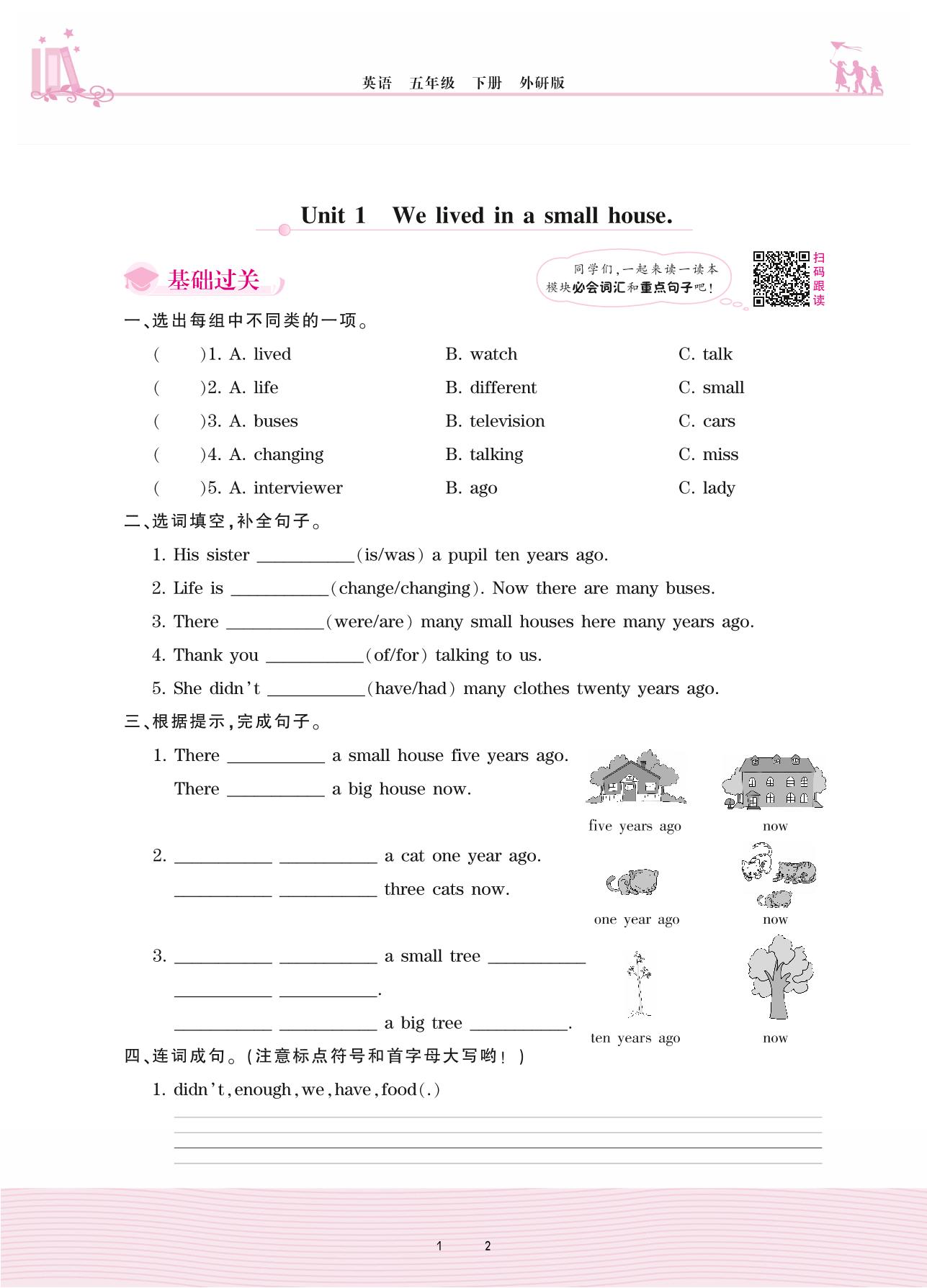2021下册五年级英语外研版 Module 1—Unit 1 We lived in a small house.