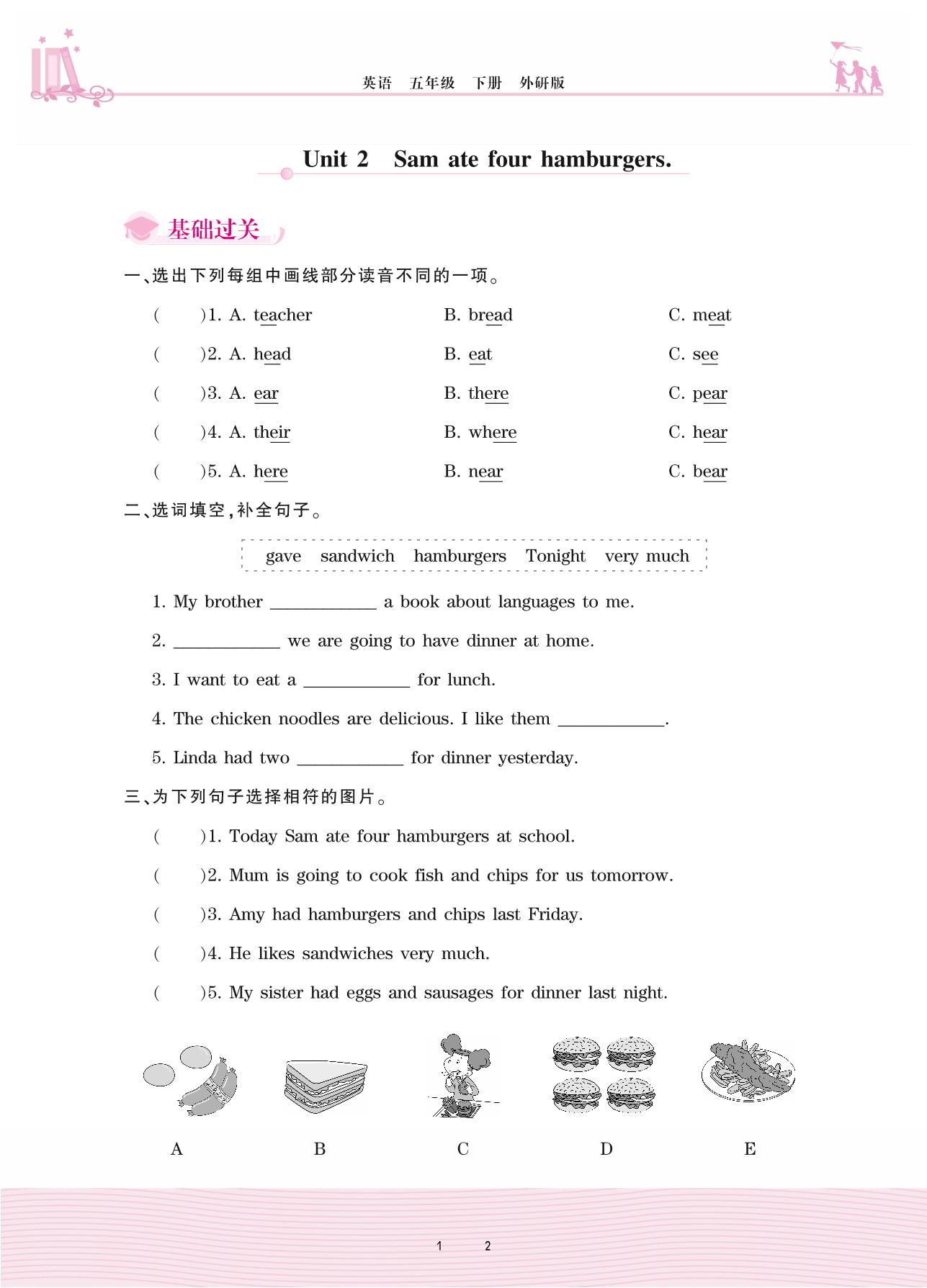 2021下册五年级英语外研版 Module 3—Unit 2 Sam ate four hamburgers.