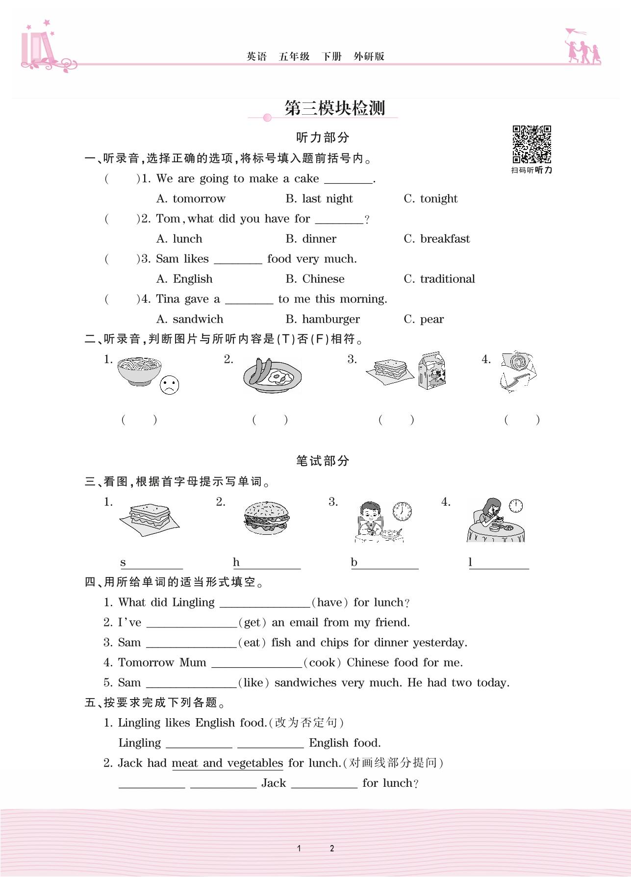 2021下册五年级英语外研版 Module 3—第三模块检测