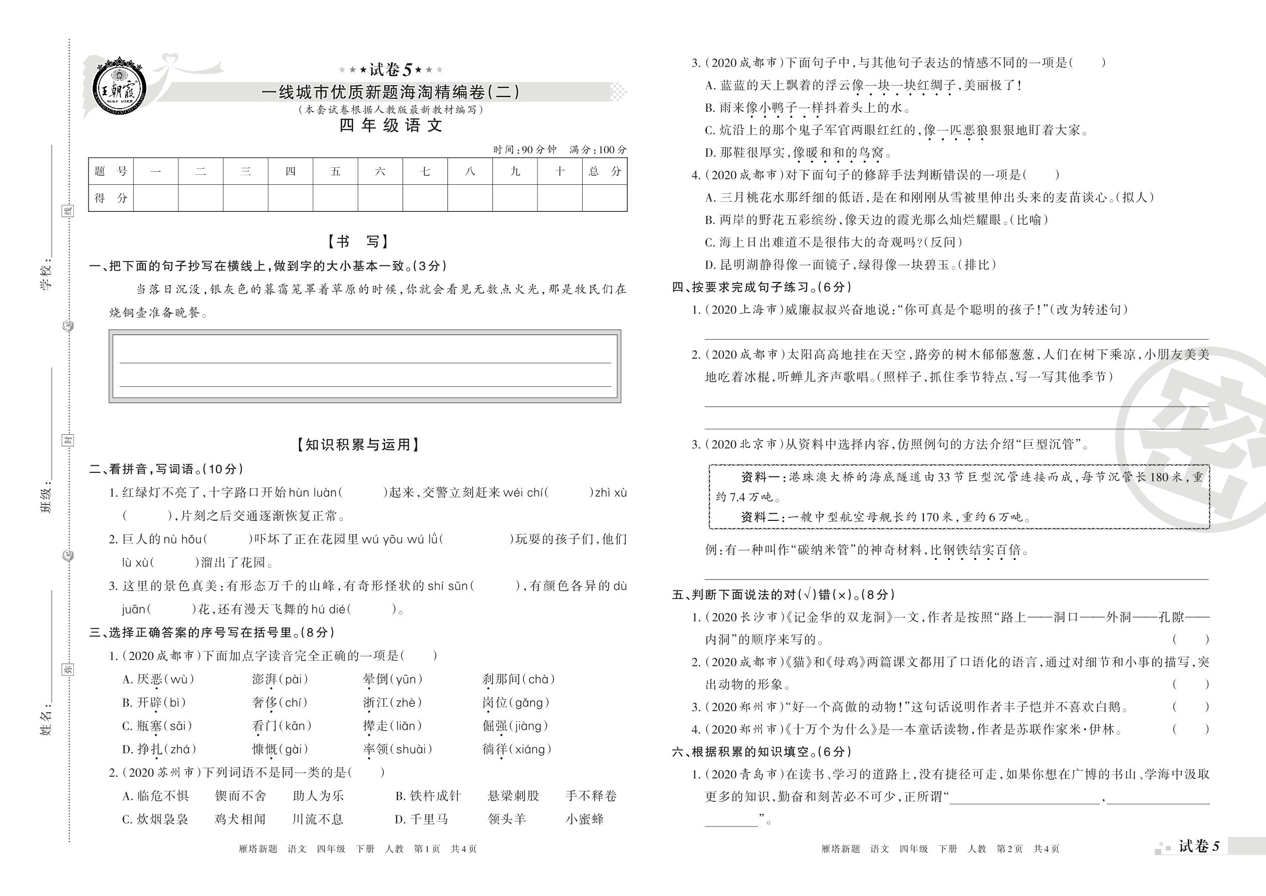 王朝霞海淘期末精编卷四年级下册语文(人教版)_R210801180734【5】