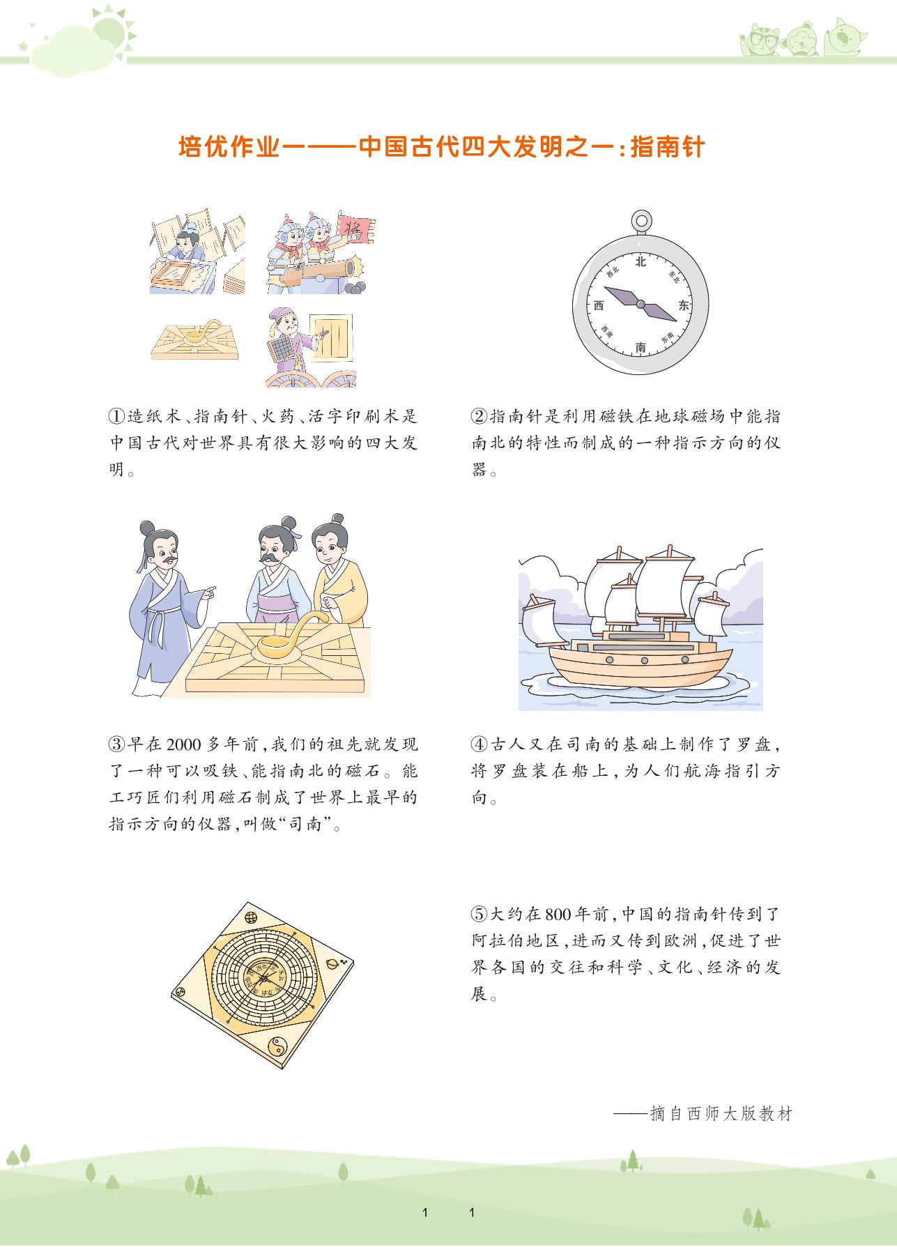 2021下册三年级数学人教版 第一单元 位置与方向(一)——培优作业一 中国古代四大发明之一:指南针