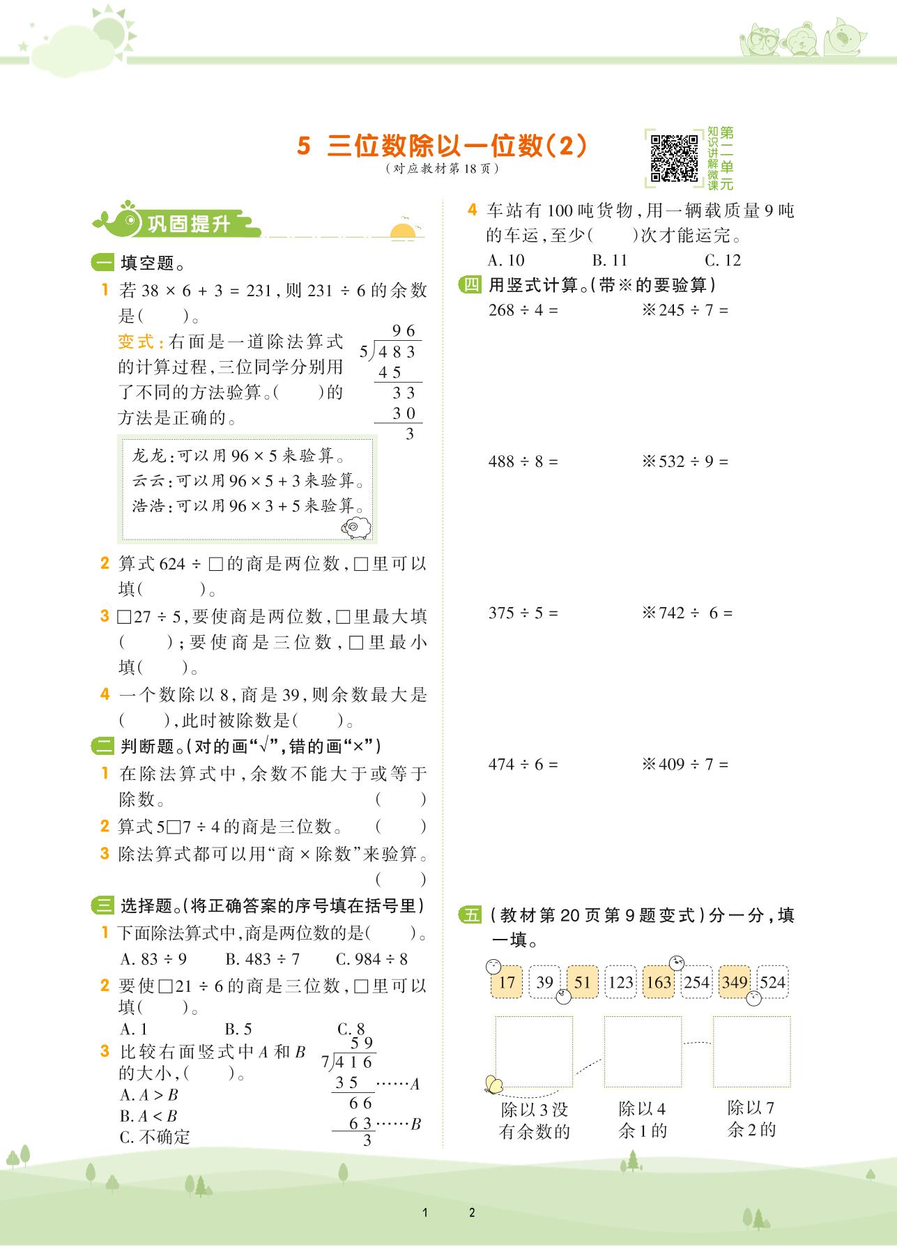 2021下册三年级数学人教版 第二单元 除数是一位数的除法——5 三位数除以一位数(2)