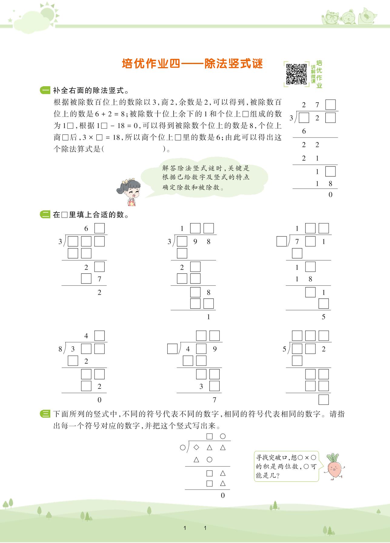 2021下册三年级数学人教版 第二单元 除数是一位数的除法——培优作业四 除法竖式谜