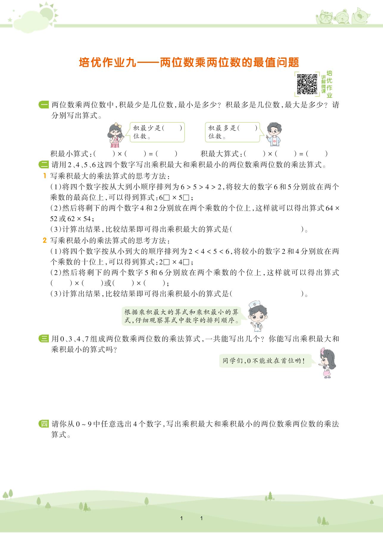2021下册三年级数学人教版 第四单元 两位数乘两位数——培优作业九 两位数乘两位数的最值问题