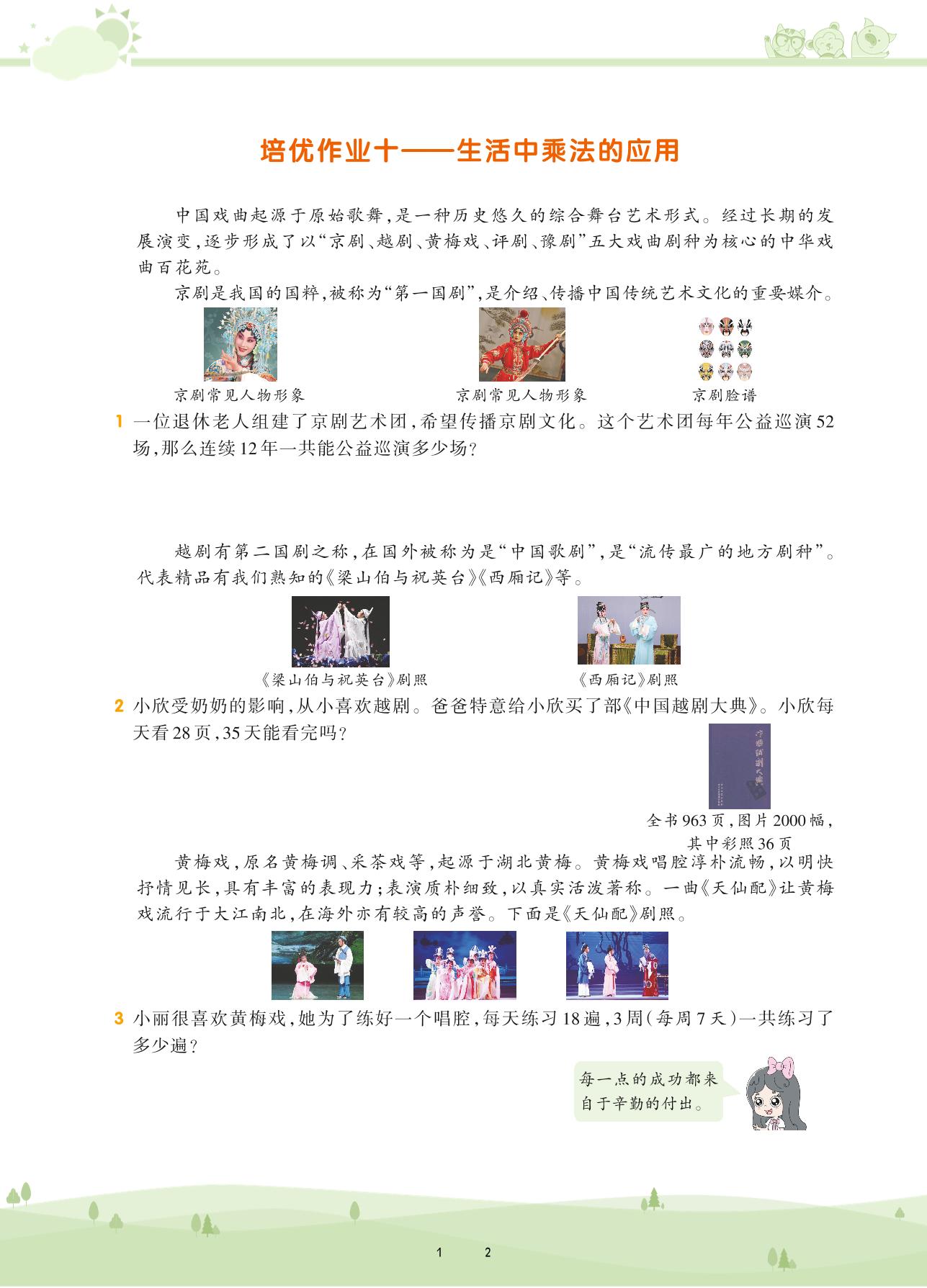 2021下册三年级数学人教版 第四单元 两位数乘两位数——培优作业十 生活中乘法的应用