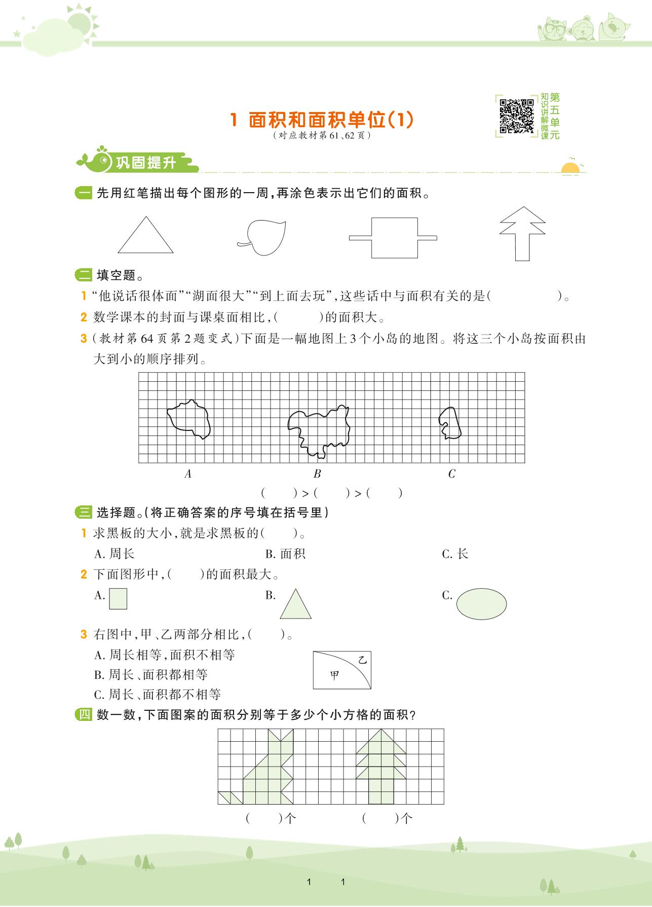 2021下册三年级数学人教版 第五单元 面 积——1 面积和面积单位(1)