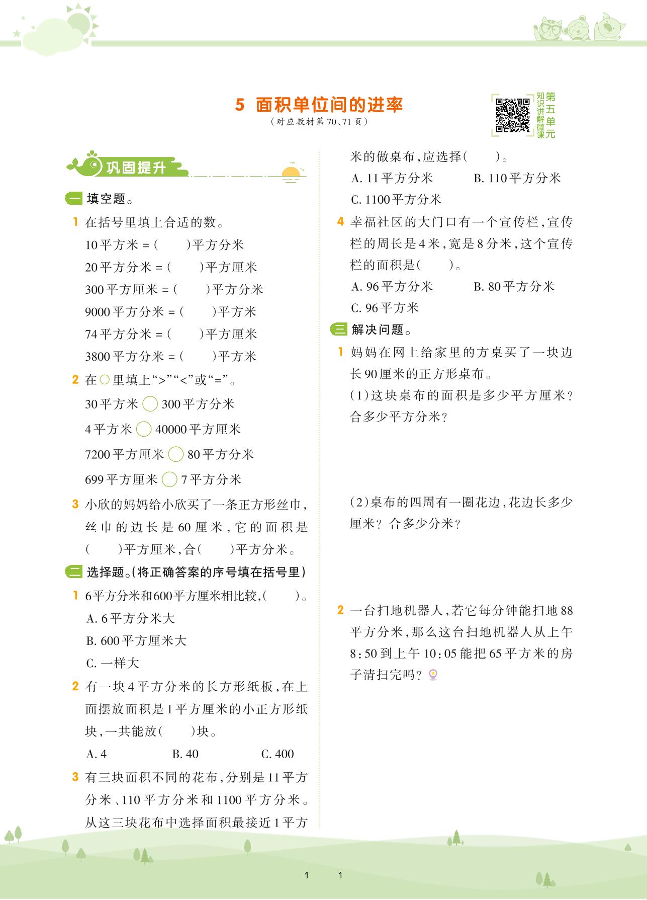 2021下册三年级数学人教版 第五单元 面 积——5 面积单位间的进率