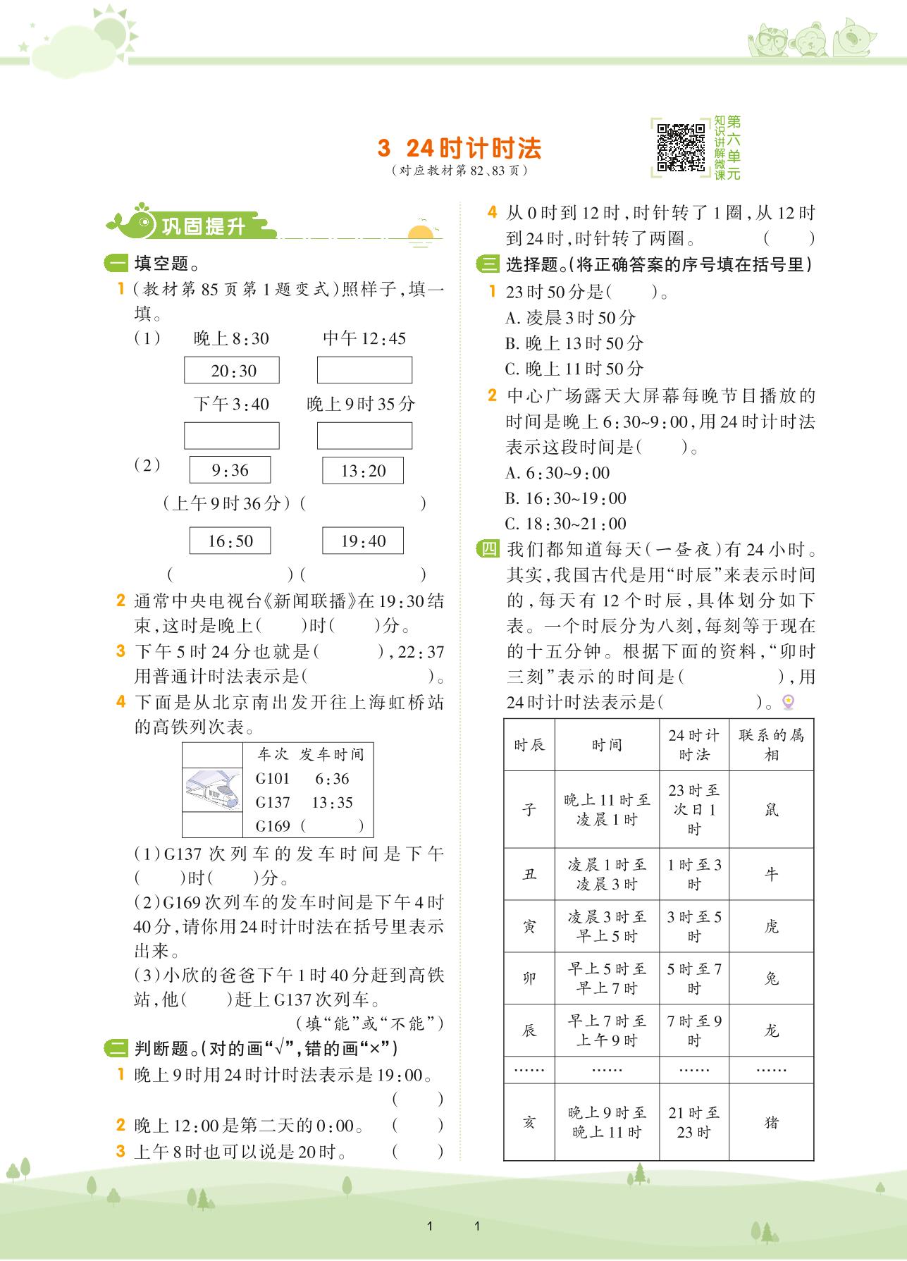 2021下册三年级数学人教版 第六单元 年、月、日——3 24时计时法