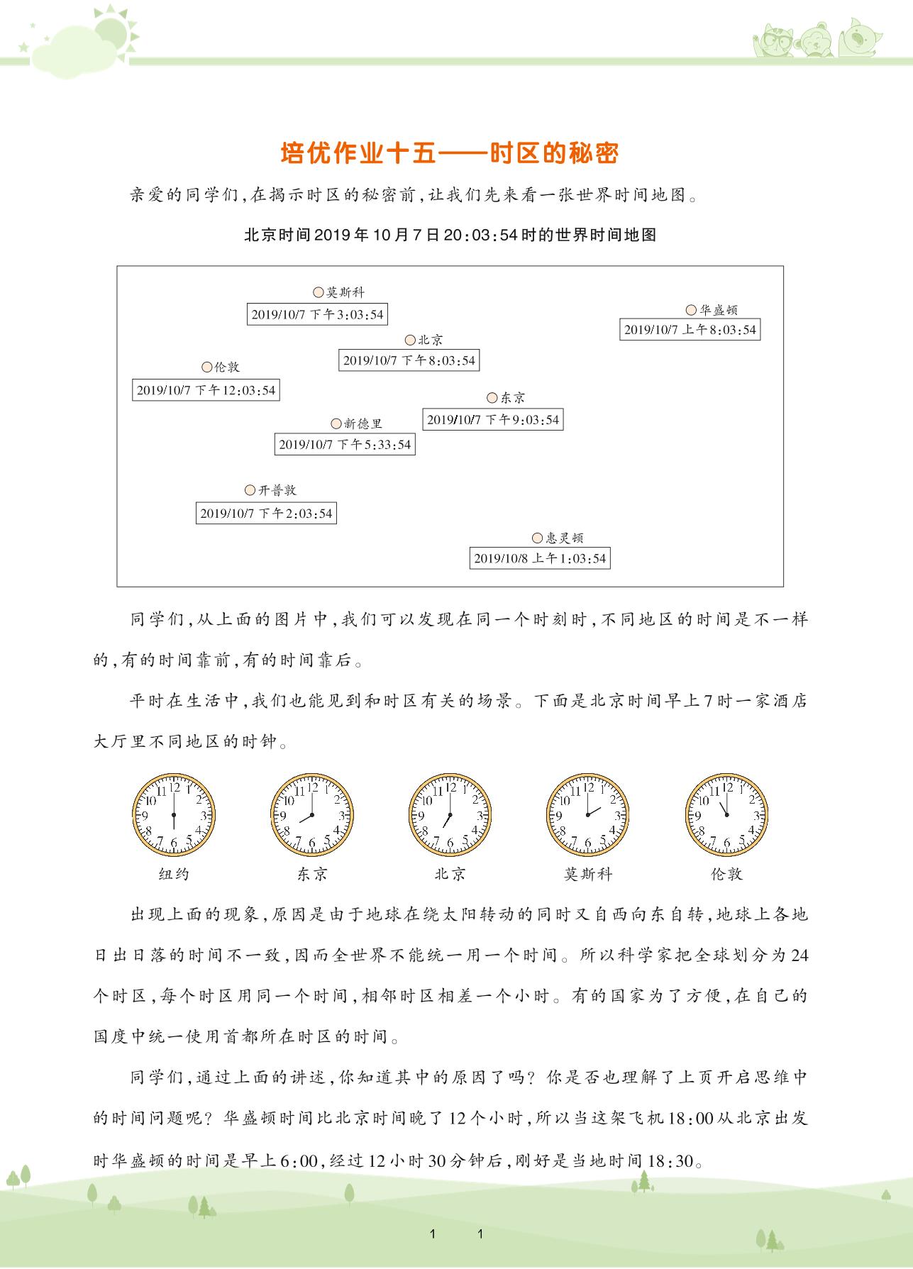 2021下册三年级数学人教版 第六单元 年、月、日——培优作业十五 时区的秘密