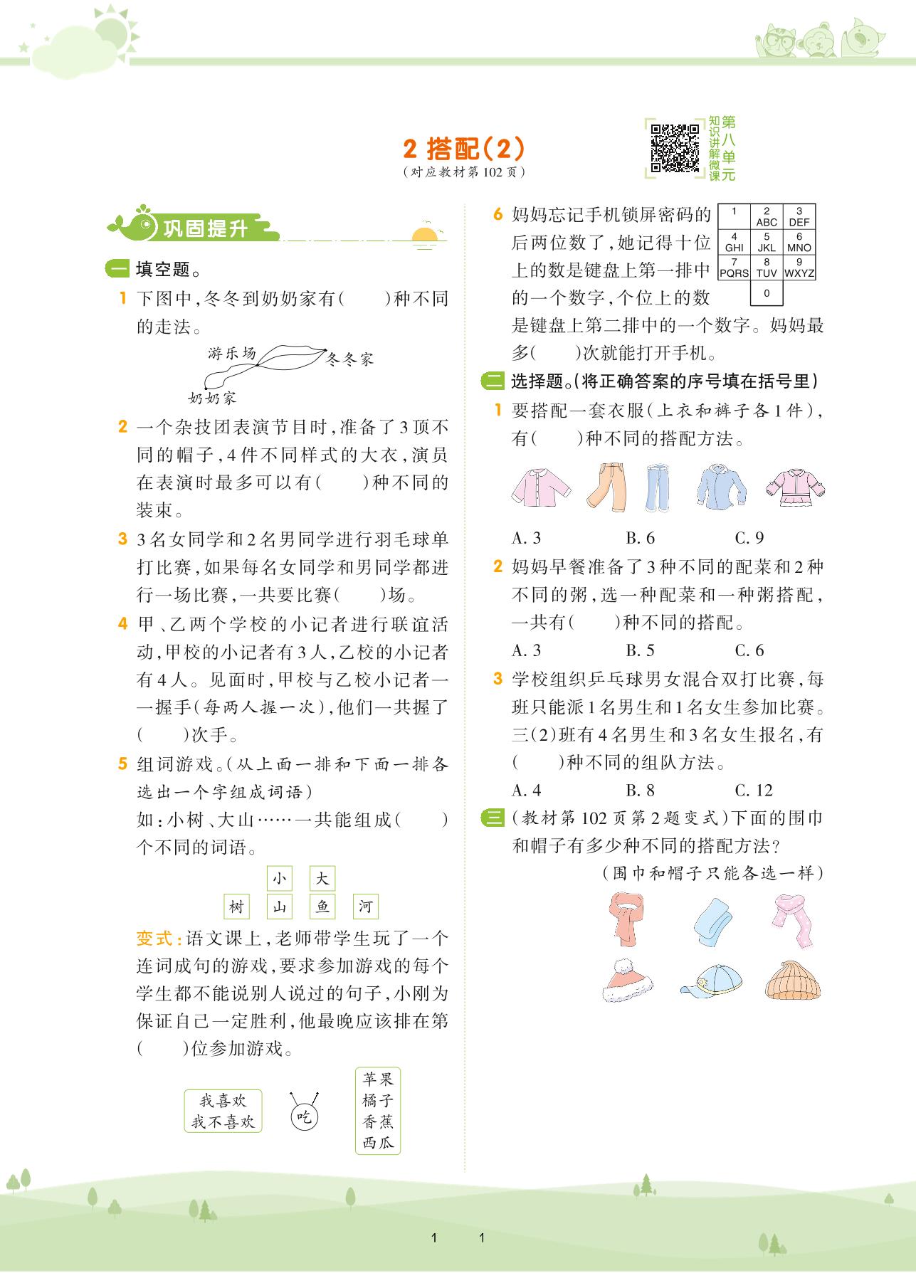 2021下册三年级数学人教版 第八单元 数学广角——搭配(二)——2 搭配(2)