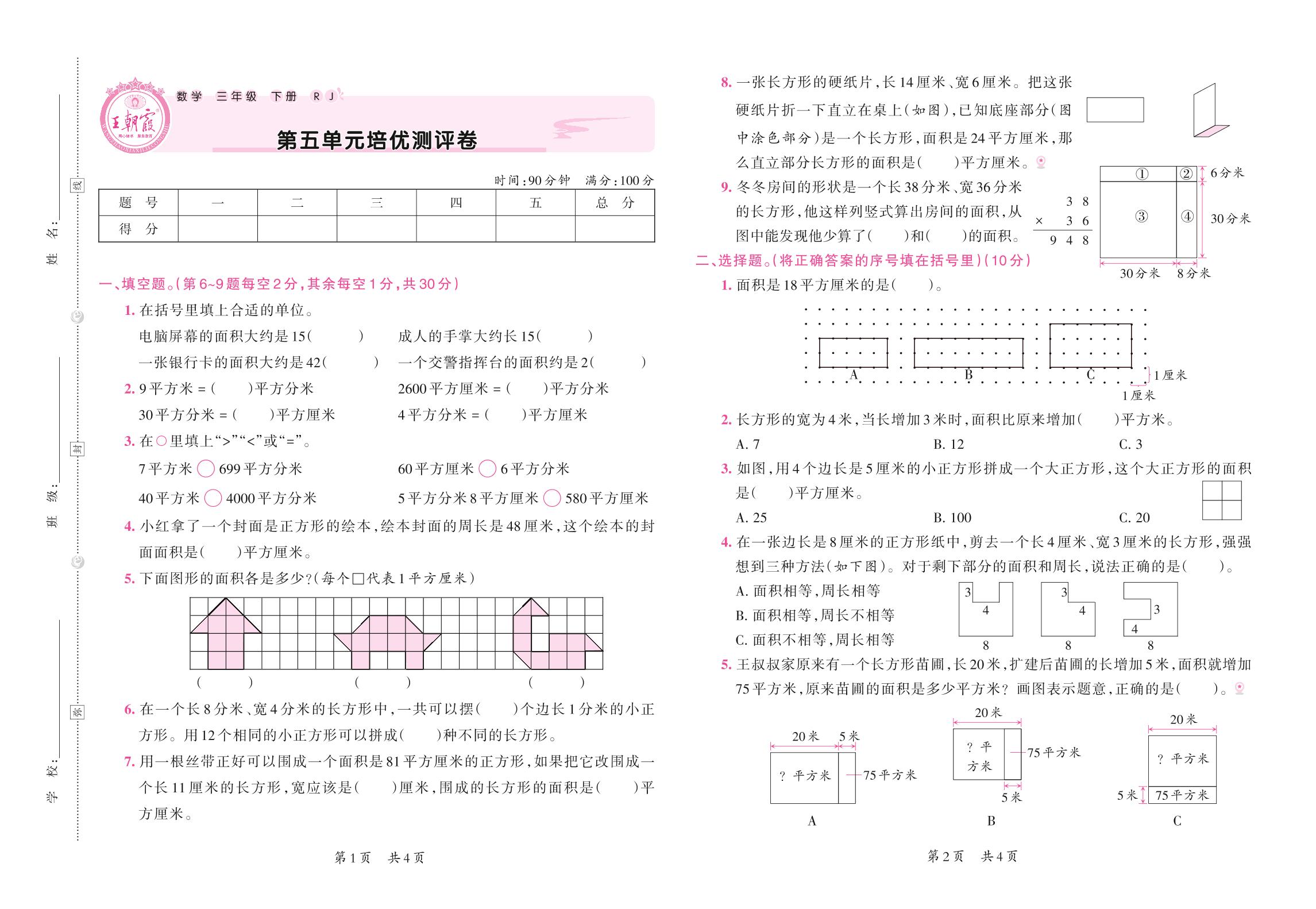 2021下册三年级数学人教版 第五单元培优测评卷
