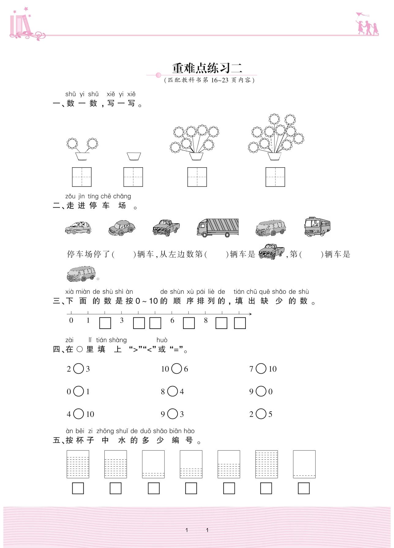 2020上册一年级数学冀教版 二 10以内数的认识——重难点练习二