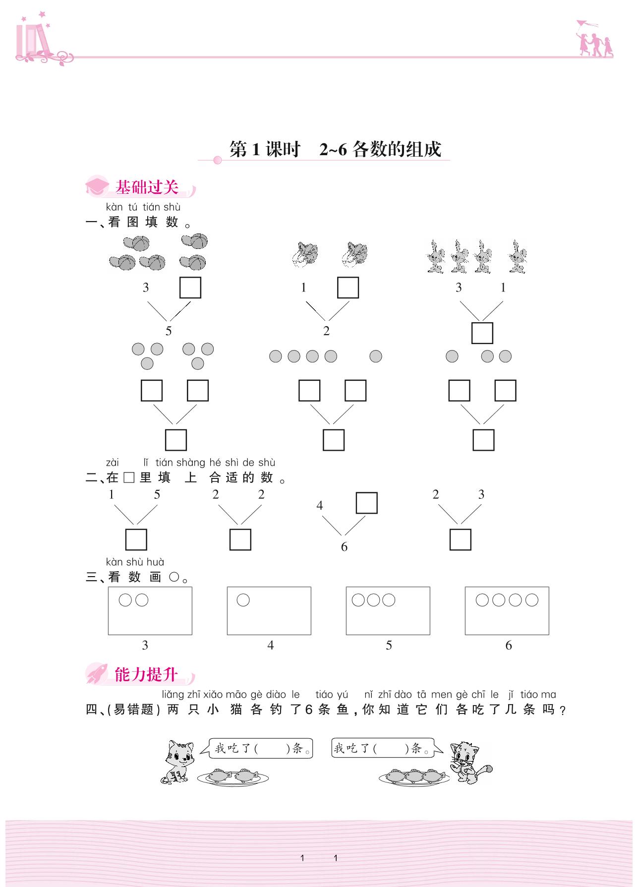 2020上册一年级数学冀教版 四 合与分——第1课时 2~6各数的组成