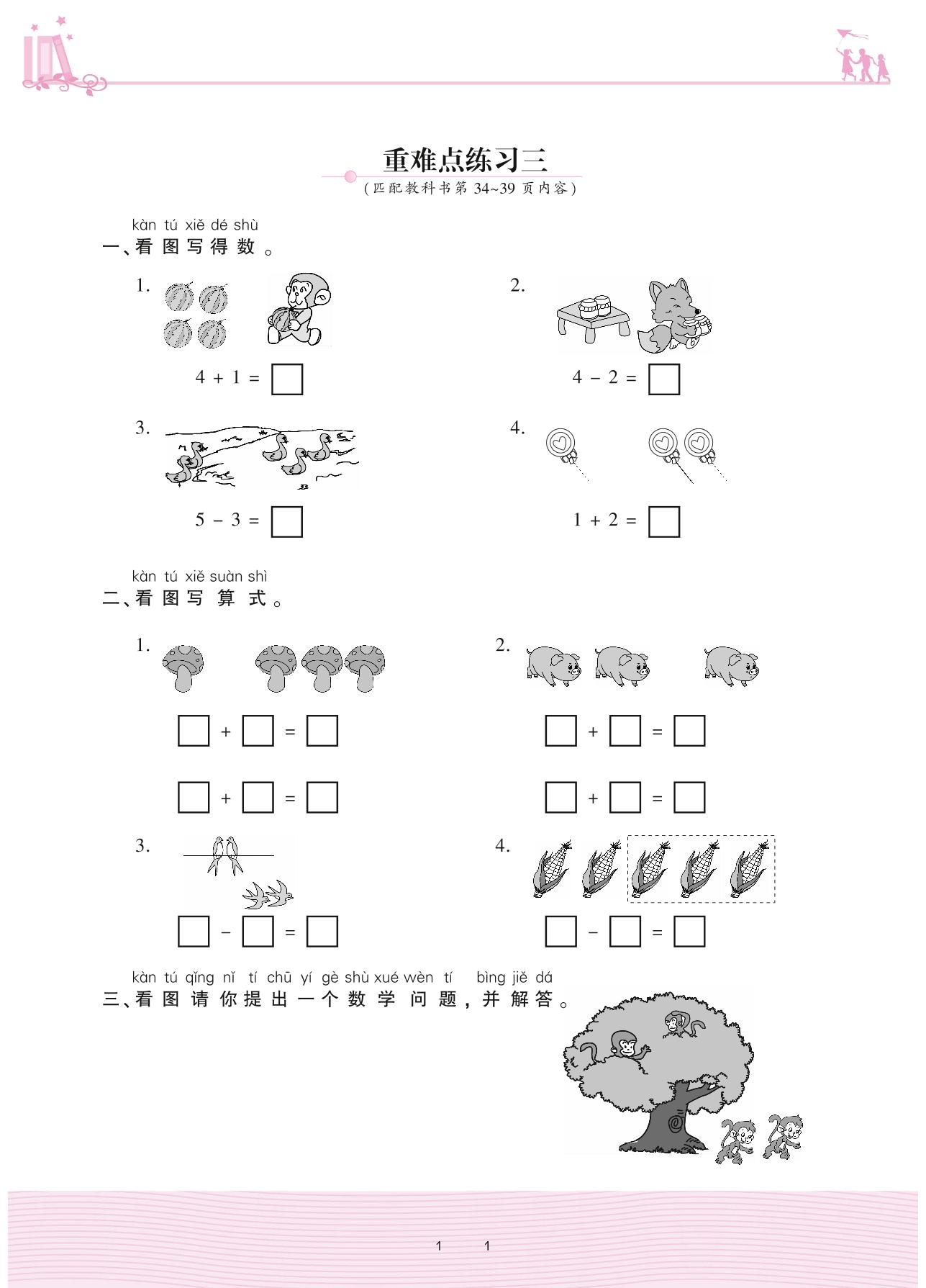 2020上册一年级数学冀教版 五 10以内的加法和减法——重难点练习三