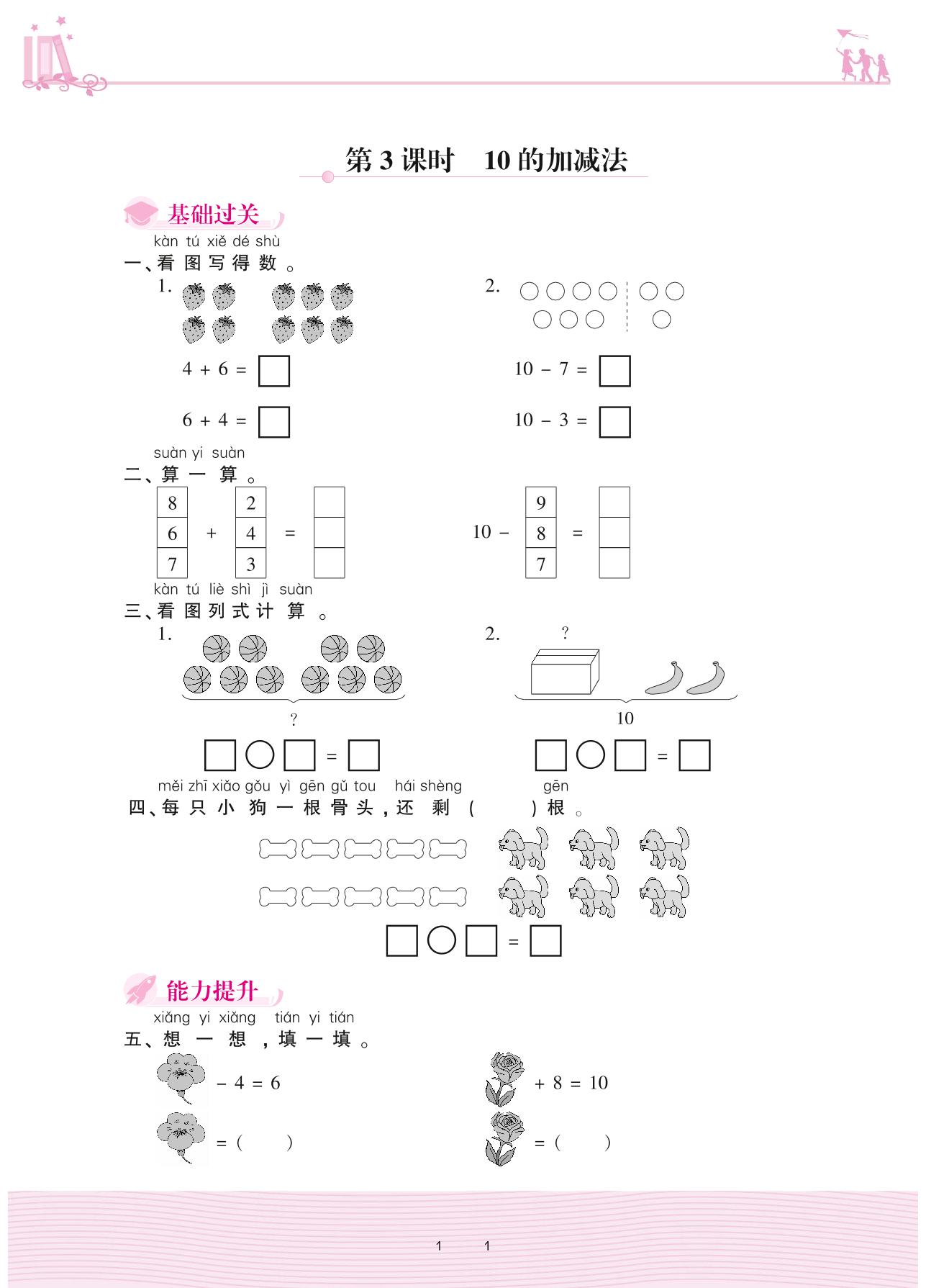 2020上册一年级数学冀教版 五 10以内的加法和减法 2. 6~10的加减法——第3课时 10的加减法