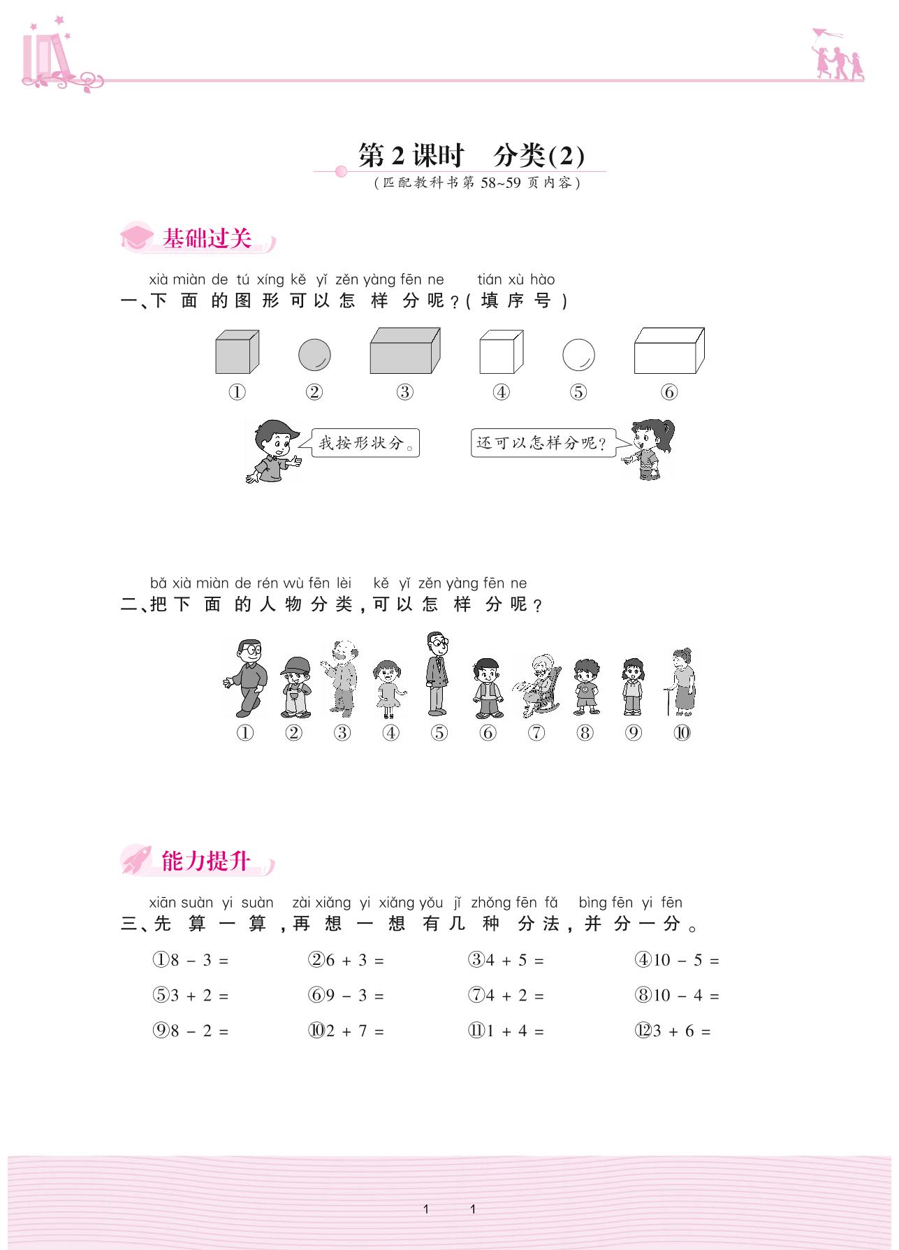 2020上册一年级数学冀教版 六 分类——第2课时 分类(2)