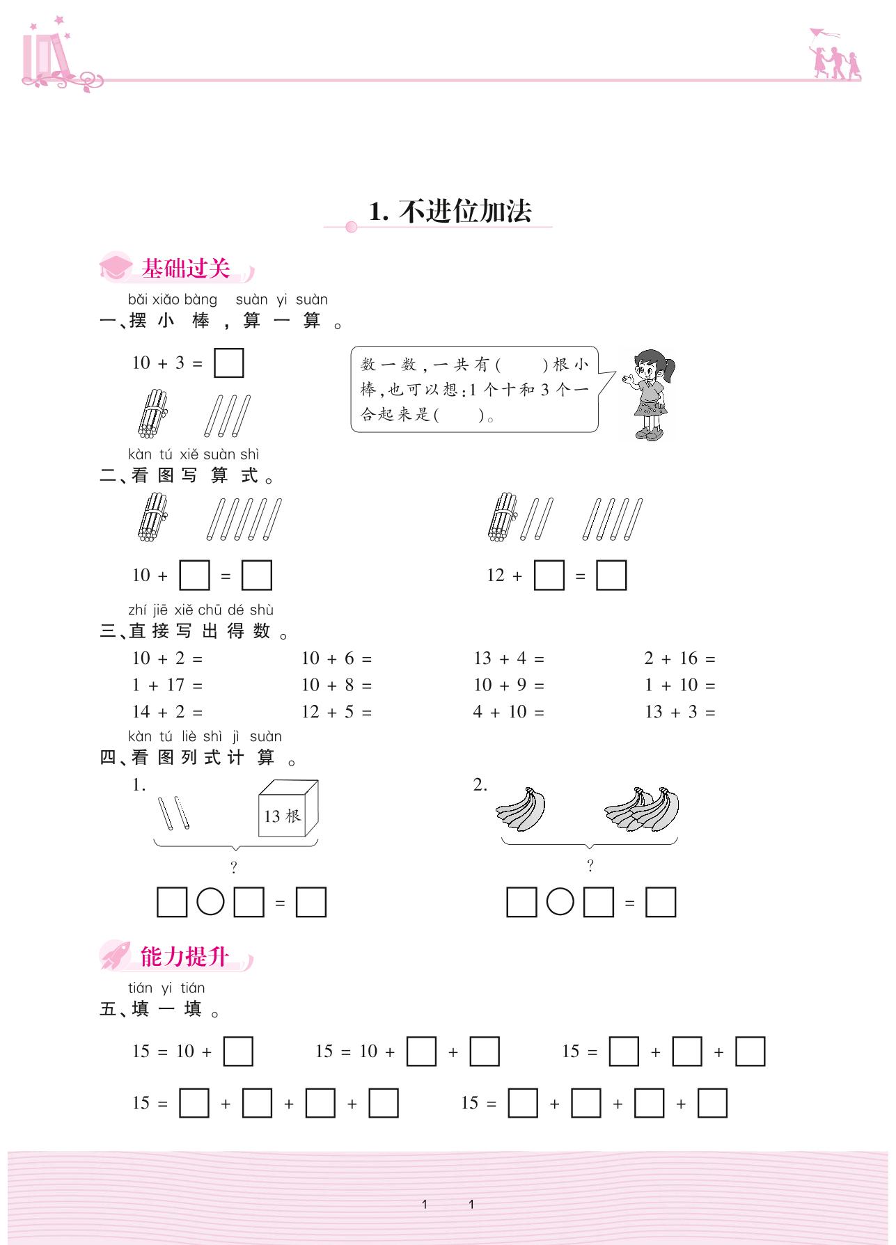 2020上册一年级数学冀教版 八 20以内的加法 1. 不进位加法