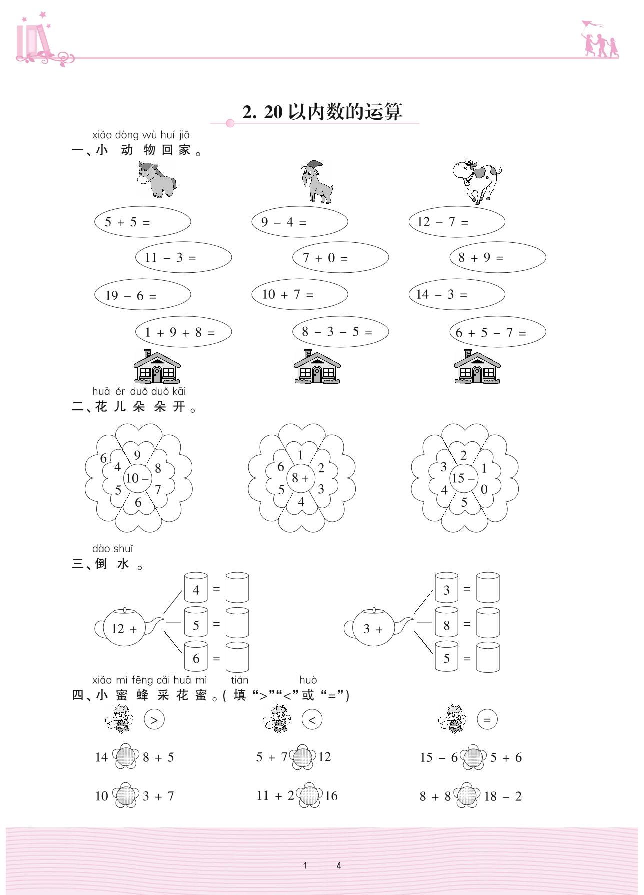 2020上册一年级数学冀教版 整理与评价——2. 20以内数的运算