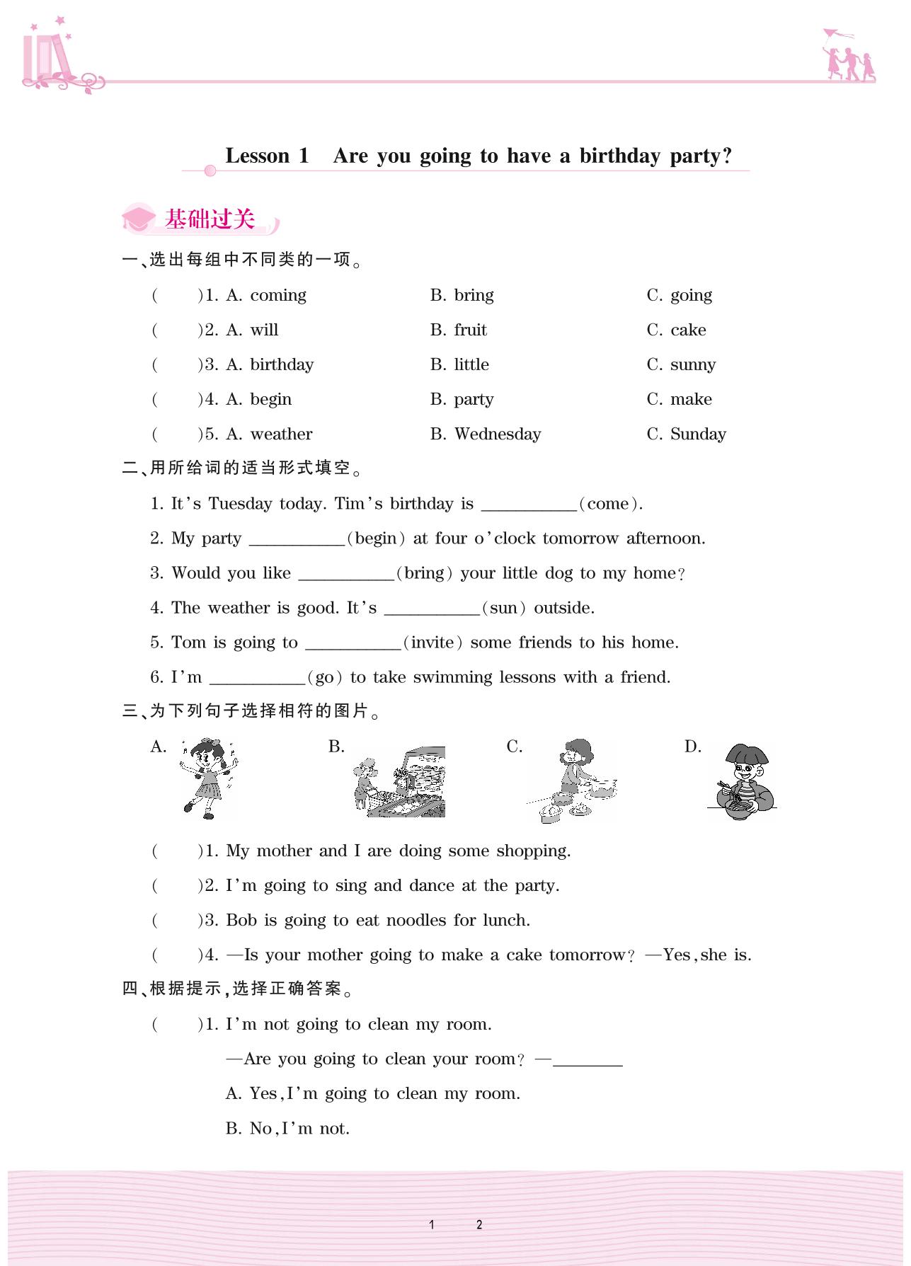 2020上册六年级英语科普版 Lesson 1 Are you going to have a birthday party?