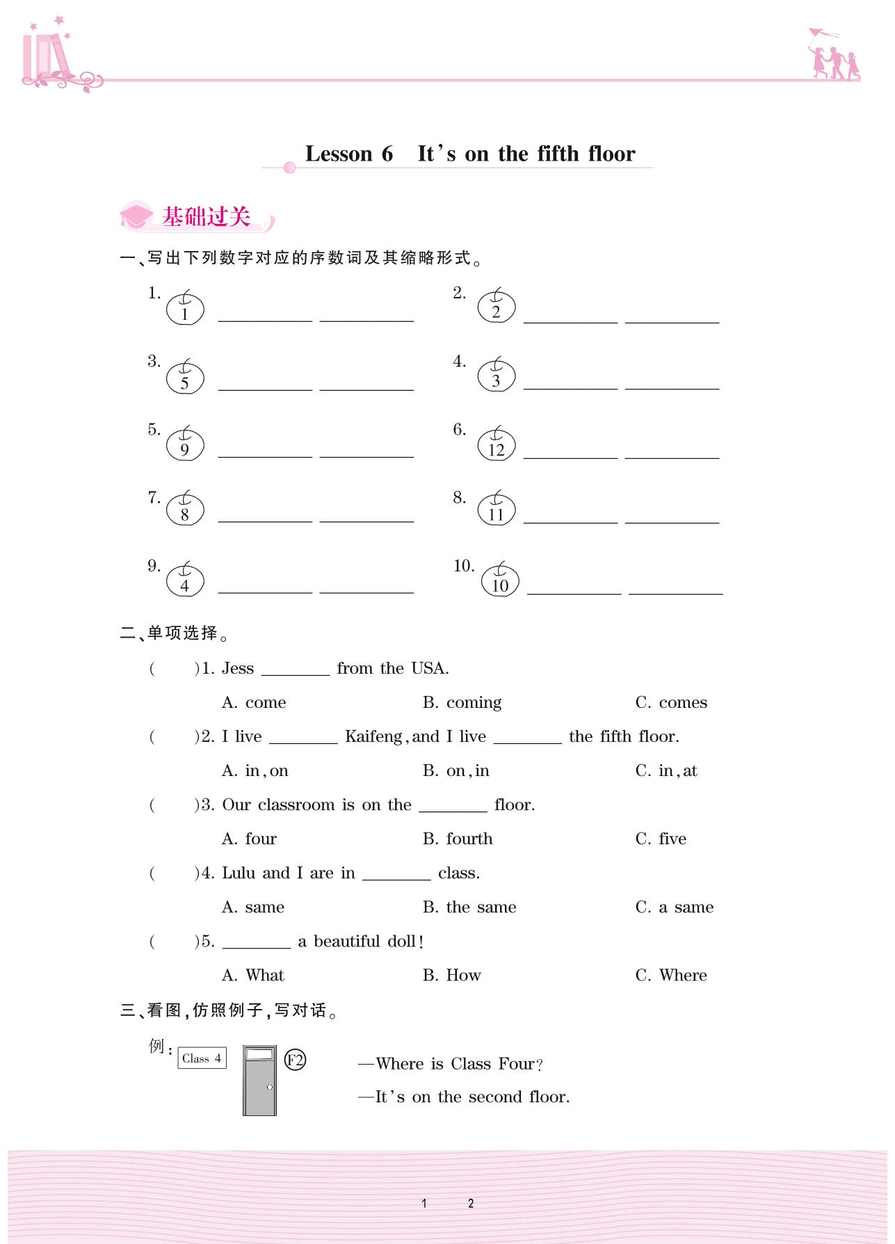 2020上册六年级英语科普版 Lesson 6 It’s on the fifth floor