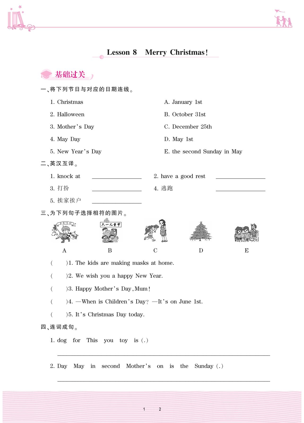 2020上册六年级英语科普版 Lesson 8 Merry Christmas!