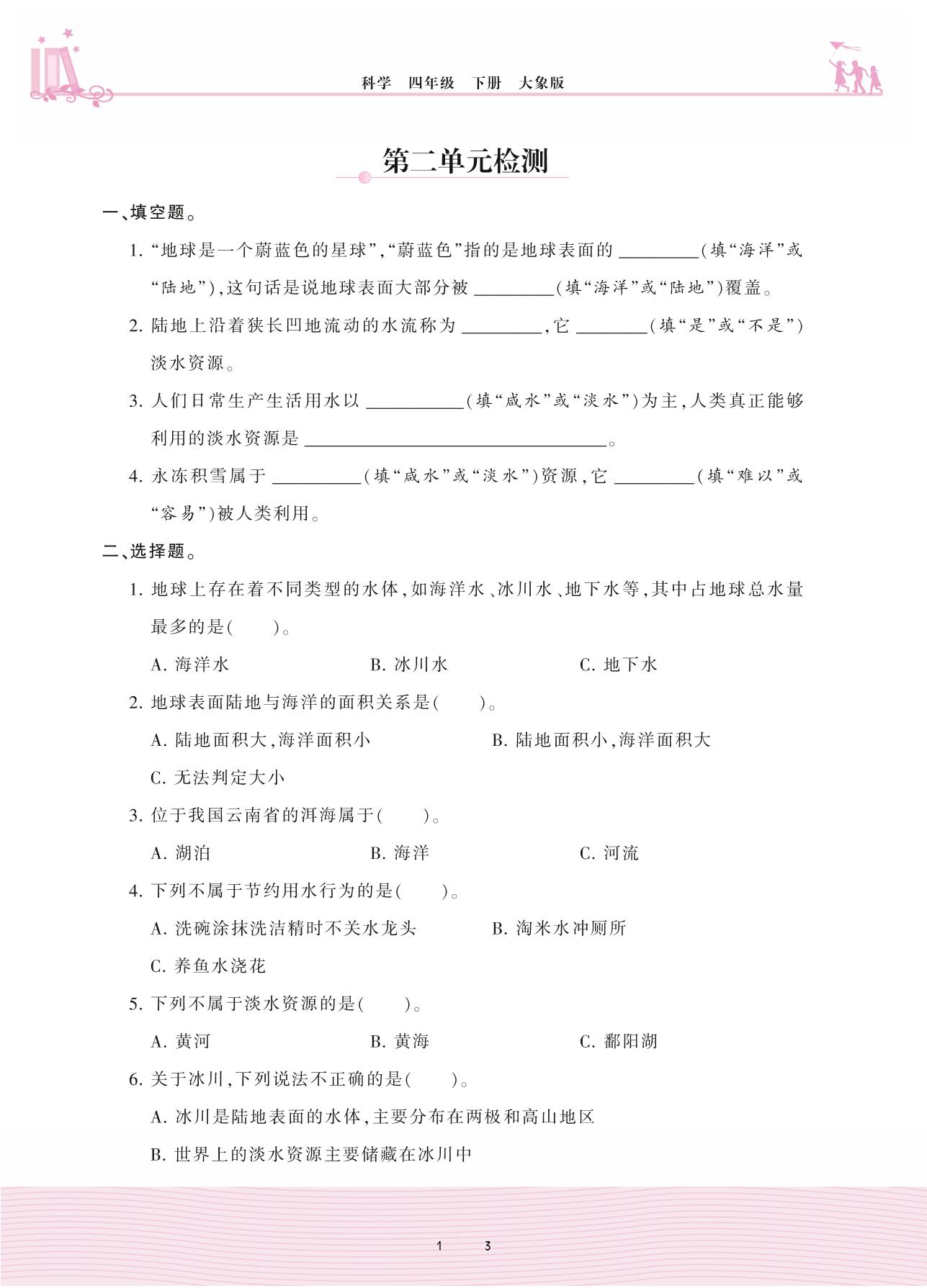 2021下册四年级科学大象版 第二单元 自然界的水——第二单元检测单元卷