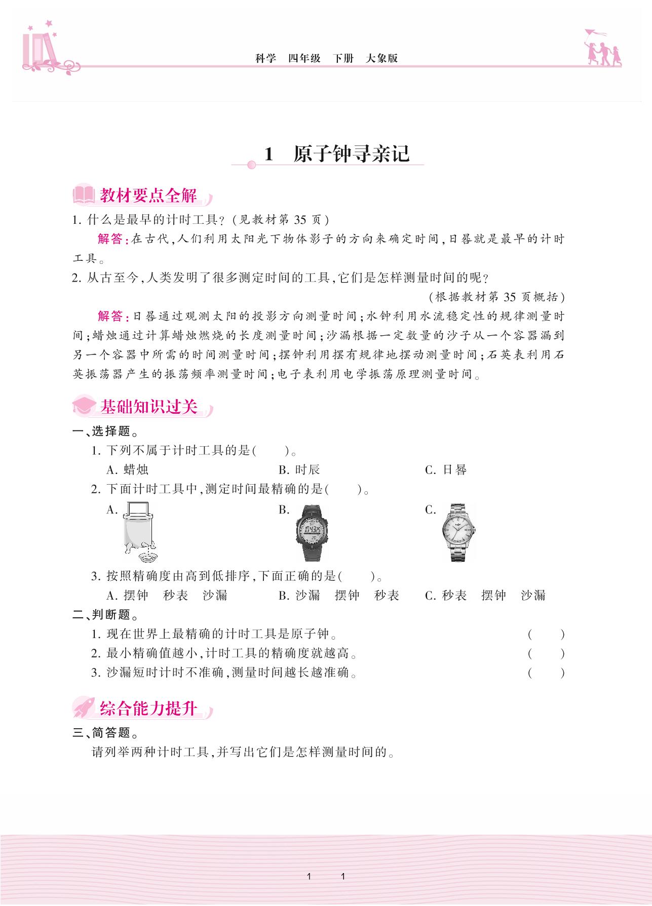 2021下册四年级科学大象版 第四单元 精确时间的步伐——1 原子钟寻亲记课时卷