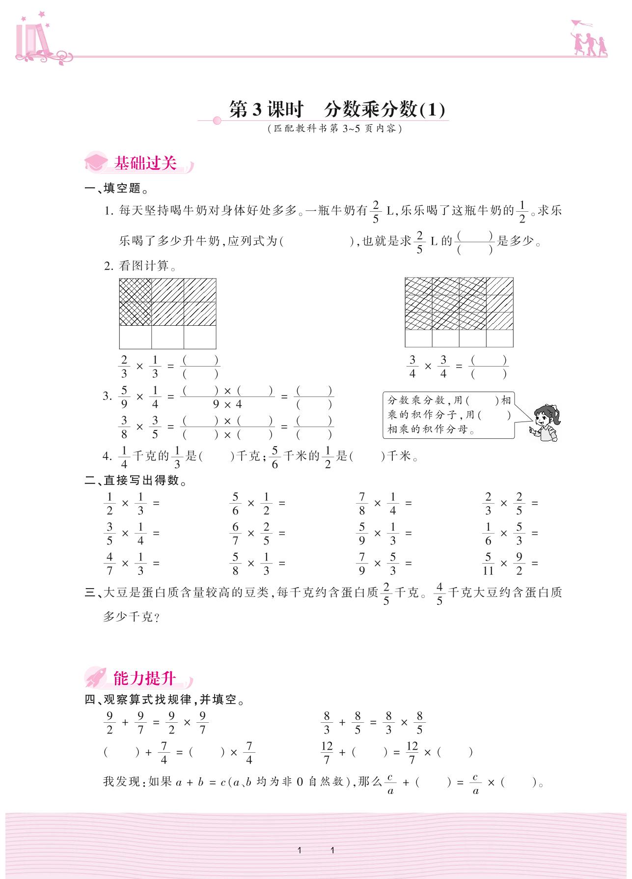 2020上册六年级数学人教版 1 分数乘法——第3课时 分数乘分数(1)