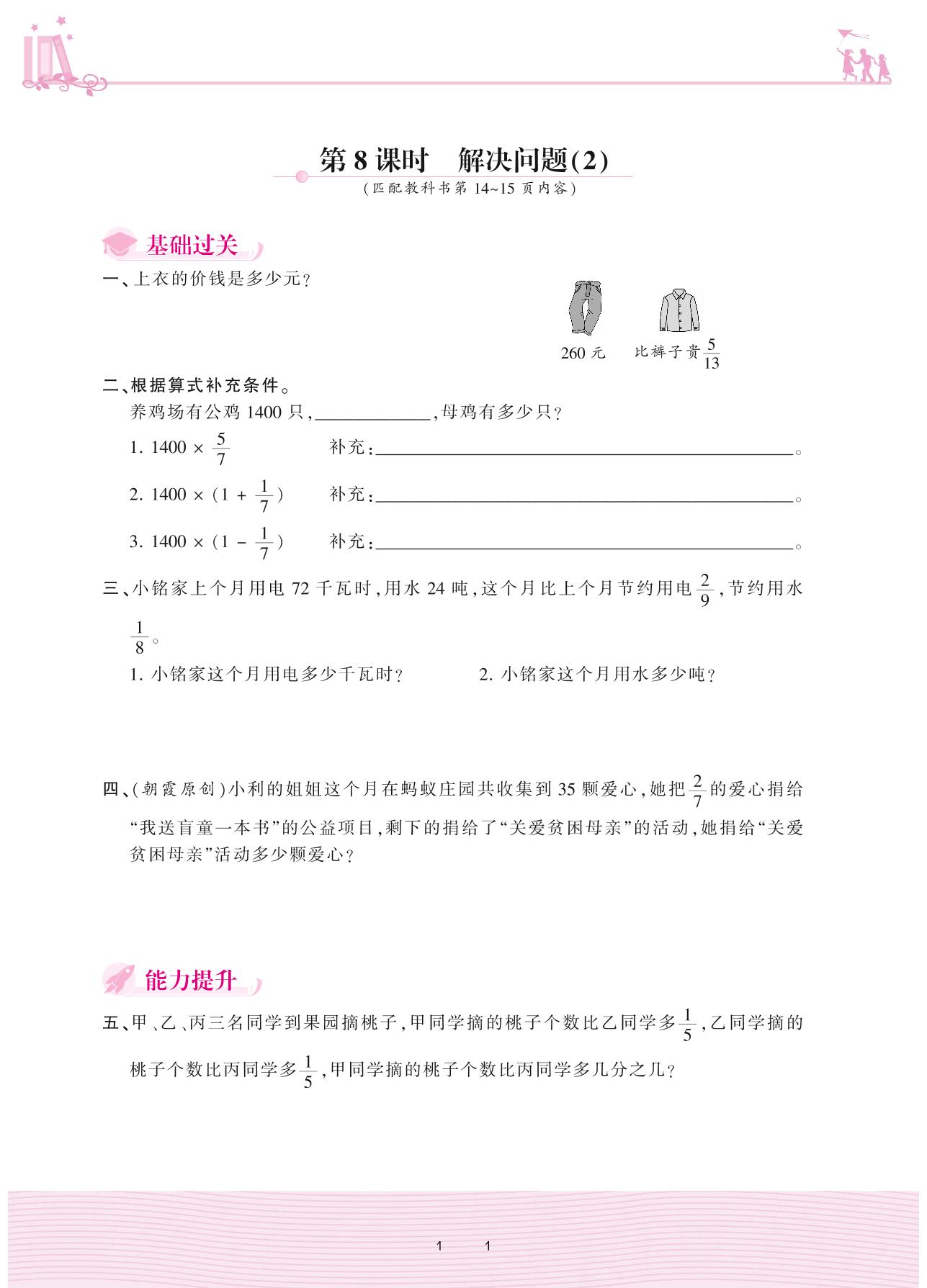 2020上册六年级数学人教版 1 分数乘法——第8课时 解决问题(2)