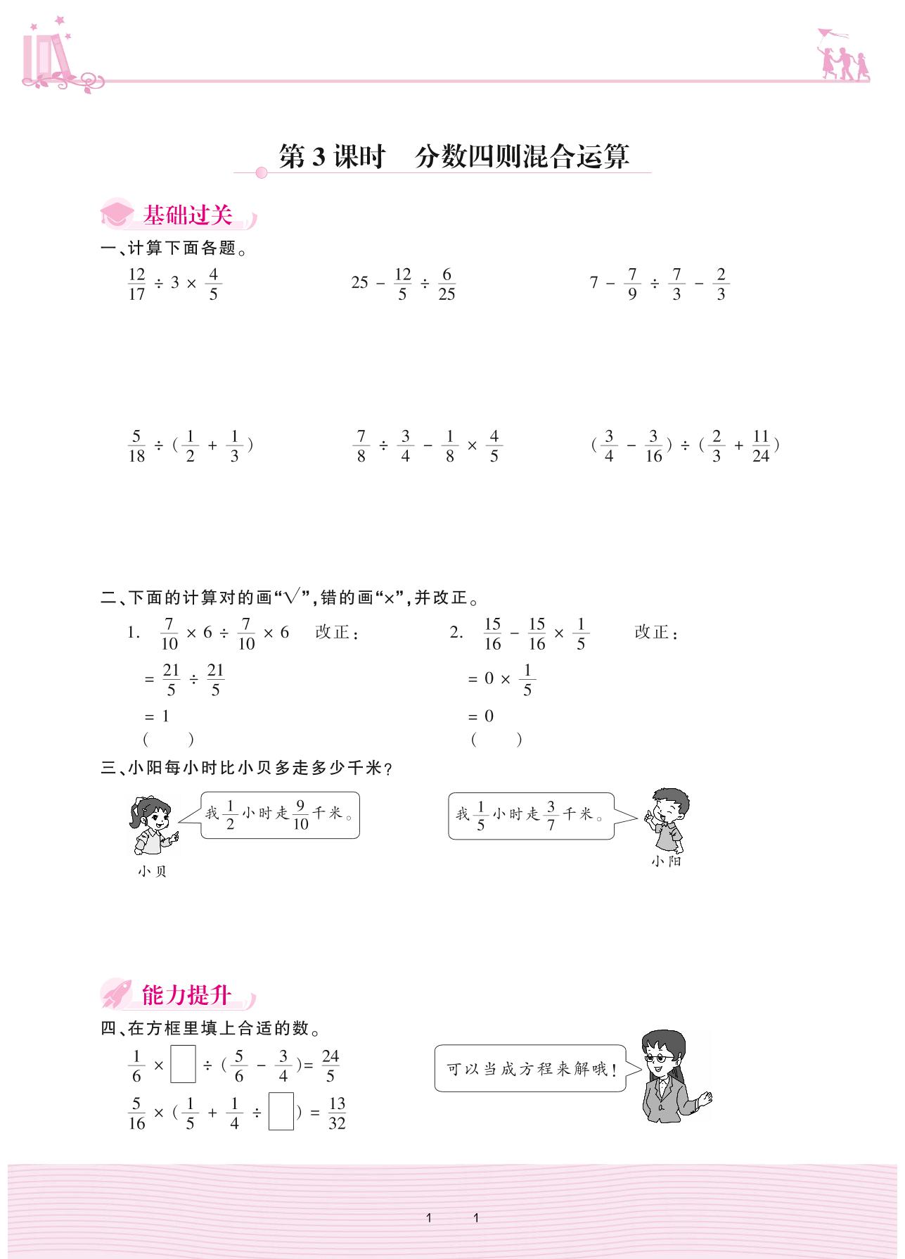 2020上册六年级数学人教版 3 分数除法 2. 分数除法——第3课时 分数四则混合运算