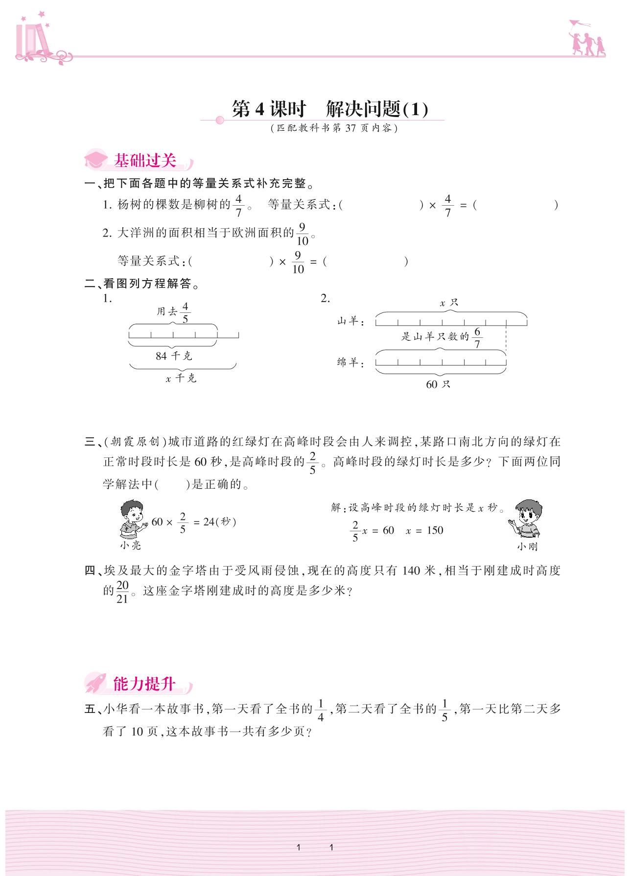 2020上册六年级数学人教版 3 分数除法 2. 分数除法——第4课时 解决问题(1)