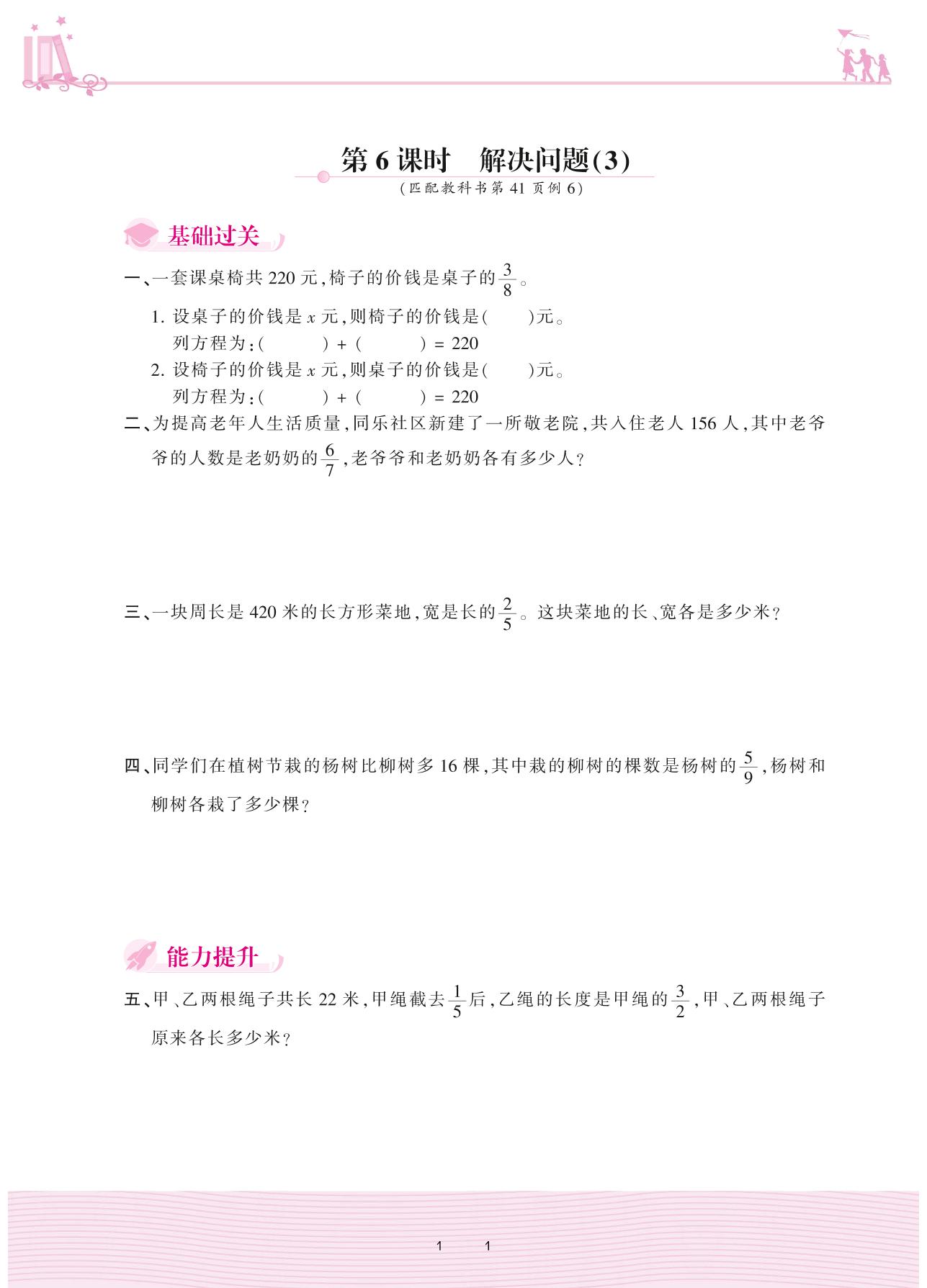 2020上册六年级数学人教版 3 分数除法 2. 分数除法——第6课时 解决问题(3)