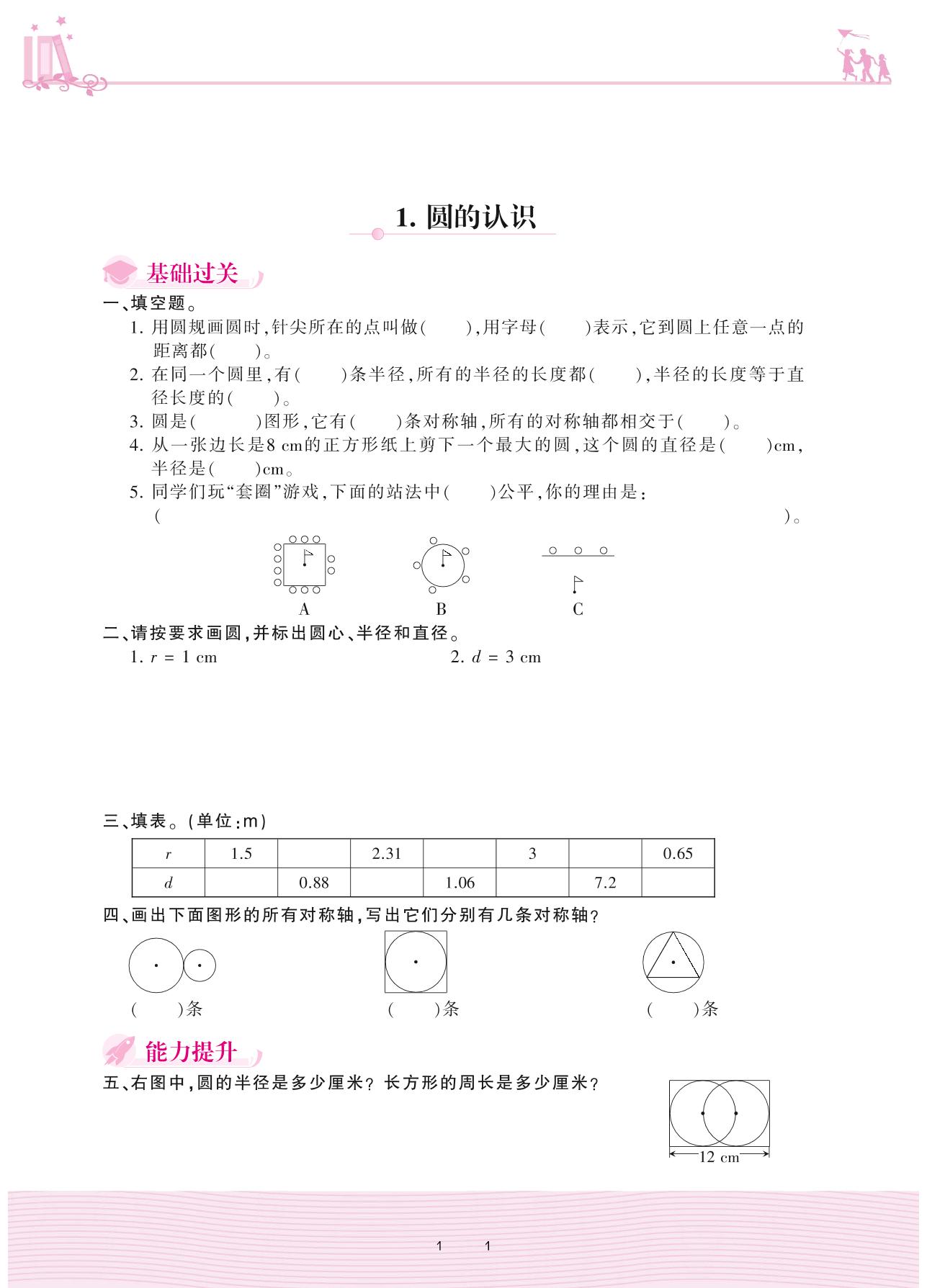 2020上册六年级数学人教版 5 圆 1. 圆的认识