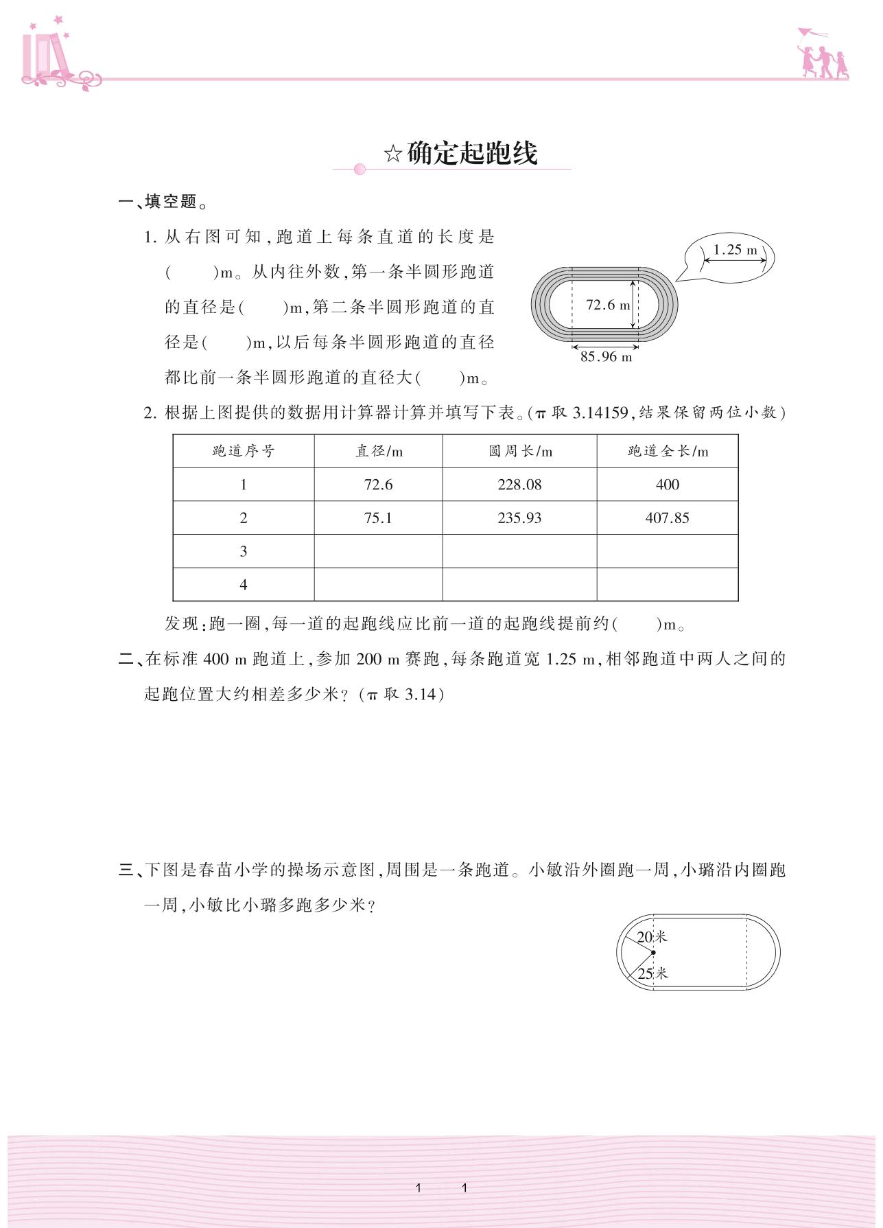 2020上册六年级数学人教版 5 圆——☆确定起跑线
