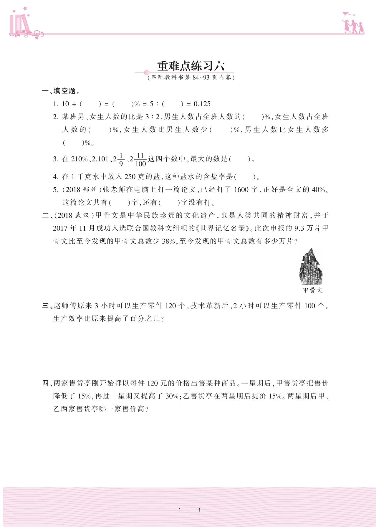 2020上册六年级数学人教版 6 百分数(一)——重难点练习六