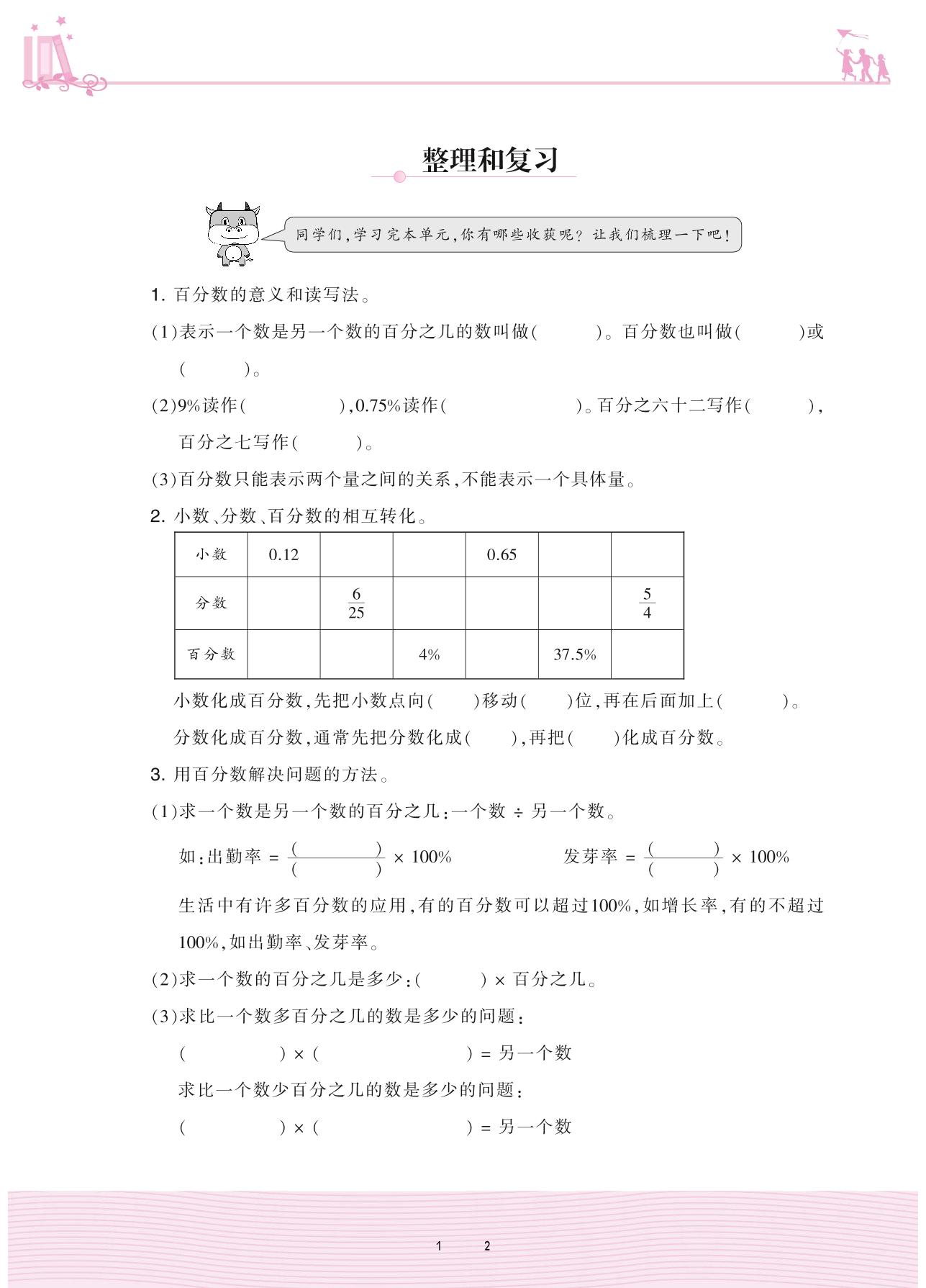2020上册六年级数学人教版 6 百分数(一)——整理和复习