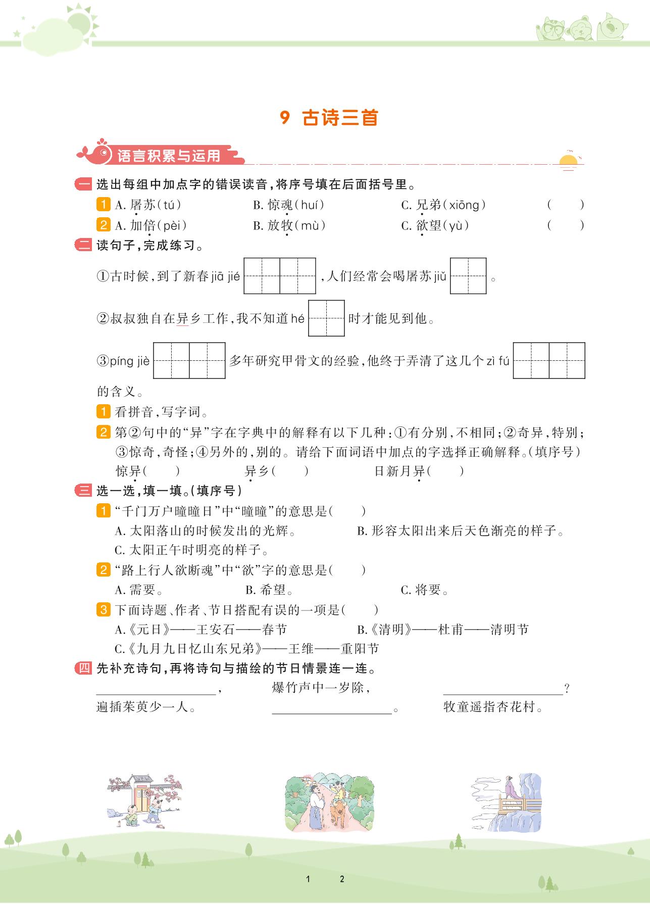 2021下册三年级语文人教版 第三单元——9 古诗三首
