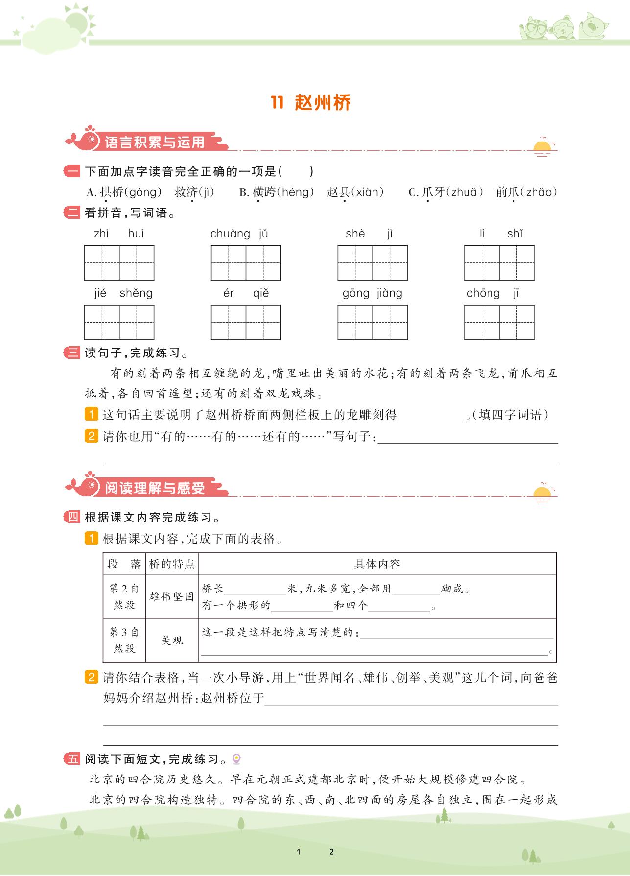 2021下册三年级语文人教版 第三单元——11 赵州桥