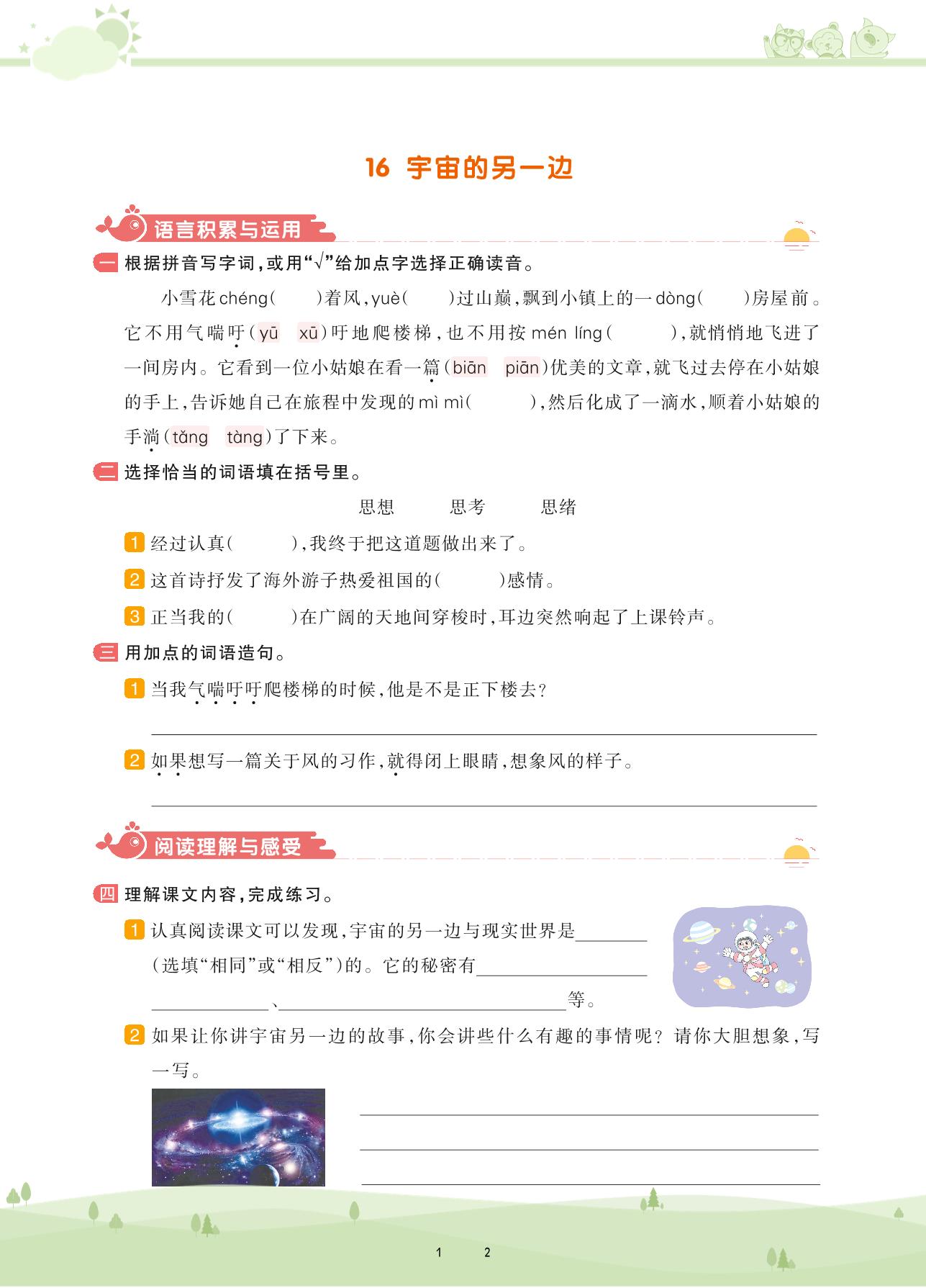 2021下册三年级语文人教版 第五单元——16 宇宙的另一边