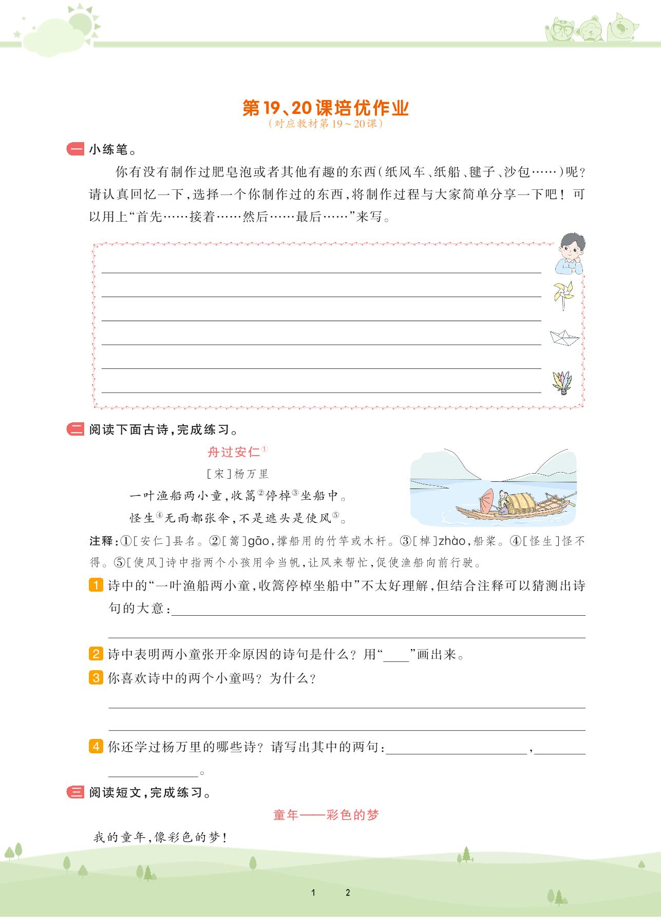 2021下册三年级语文人教版 第六单元——第19、20课培优作业