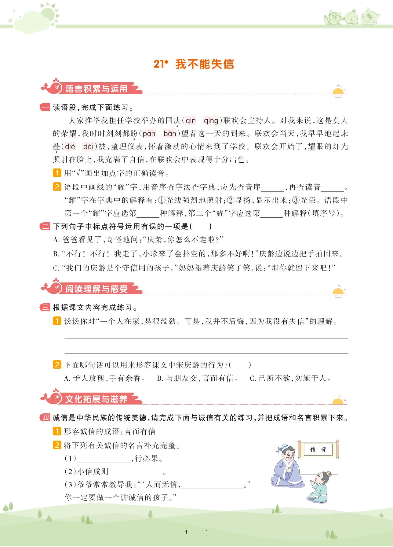 2021下册三年级语文人教版 第六单元——21 我不能失信