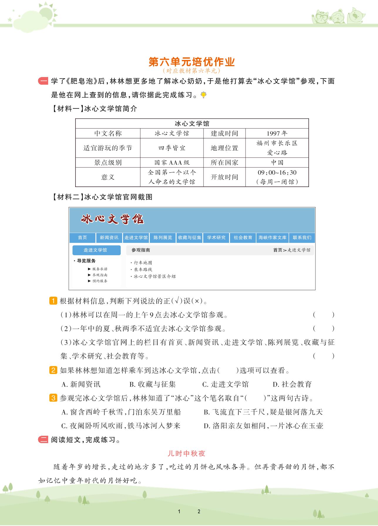 2021下册三年级语文人教版 第六单元——第六单元培优作业