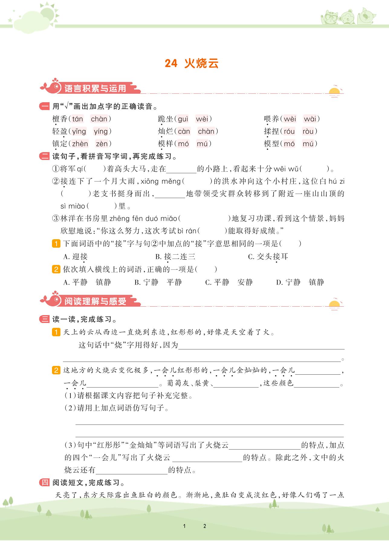 2021下册三年级语文人教版 第七单元——24 火烧云