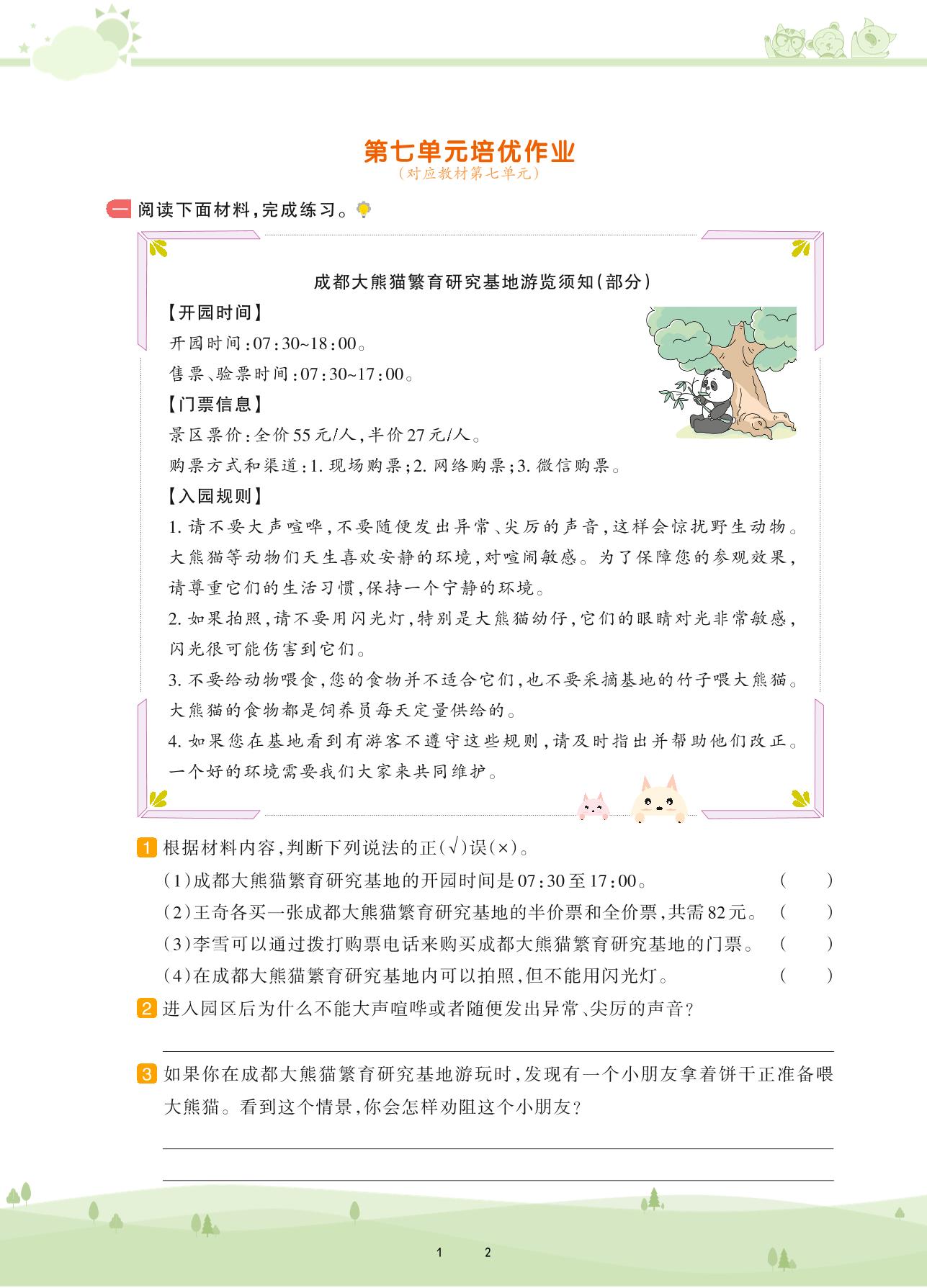 2021下册三年级语文人教版 第七单元——第七单元培优作业